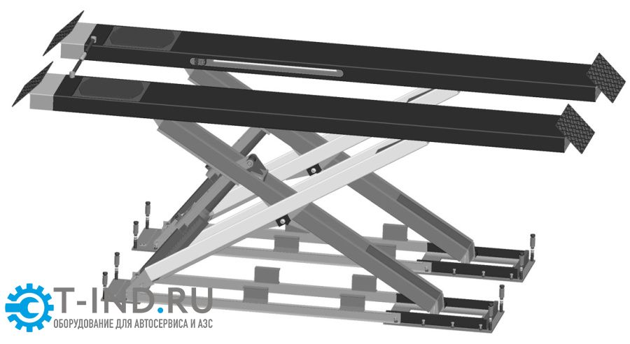 Подъёмник ножничный электрогидравлический Everlift EE-6603S.51L.50T.E.C.PD. Исполнение платформ подъемника: гладкие платформы. Оснащен люфт-детектором (направление движения пластин: правая - вращательное движение относительно центра пластины; левая - вправо/влево). Позволяет удобно проверять зазор в деталях рулевого управления и подвески легковых автомобилей (в рулевых тягах, шаровых опорах, рулевых рычагах, подшипниках колес, итд).