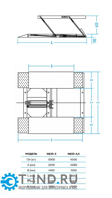 Подъемник автомобильный ножничный 4,5 тонны Nordberg N633-4,5B_220, гидравлический, 220В