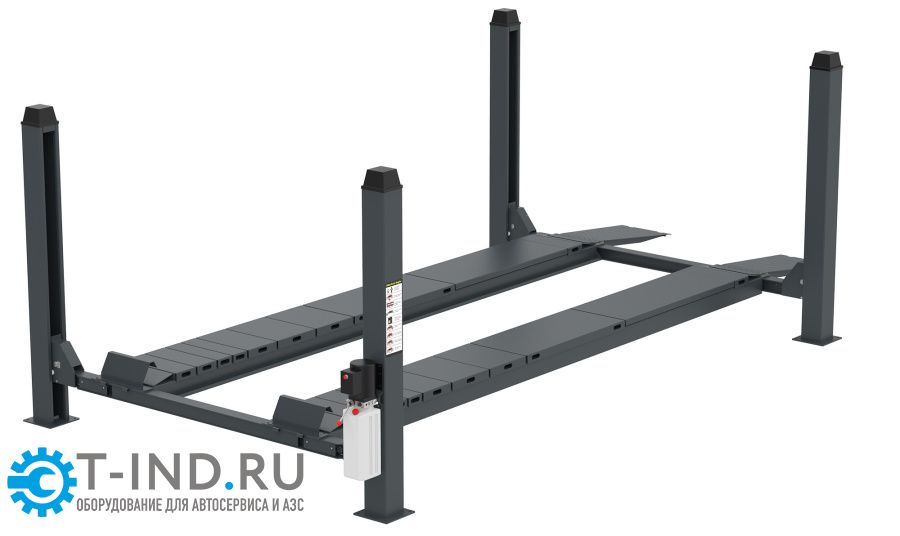 Подъемник четырехстоечный электрогидравлический для поста "сход-развал" Dekar HFL4155E. Задние подвижные пластины, углубления под передние поворотные круги с возможностью изменять их положение в зависимости от длины обслуживаемого автомобиля (круги - не входят в комплект). Удобная и функциональная разблокировка предохранительных стопоров посредством встроенных пневмоцилиндров (управление - рычагом). Опускание платформ осуществляется при задействовании рычага управления.