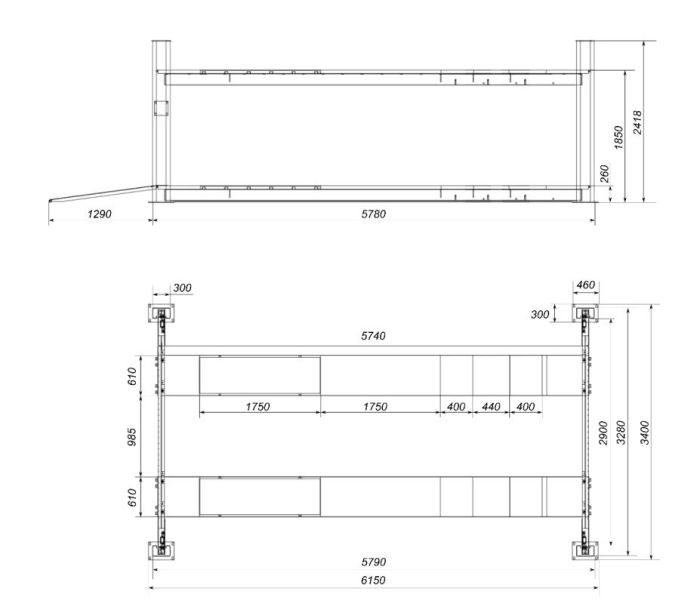 | Общая ширина подъёмника, мм | 3400 |