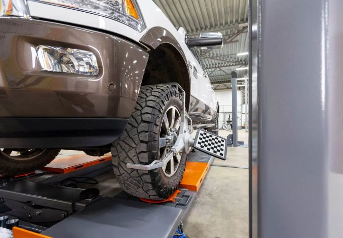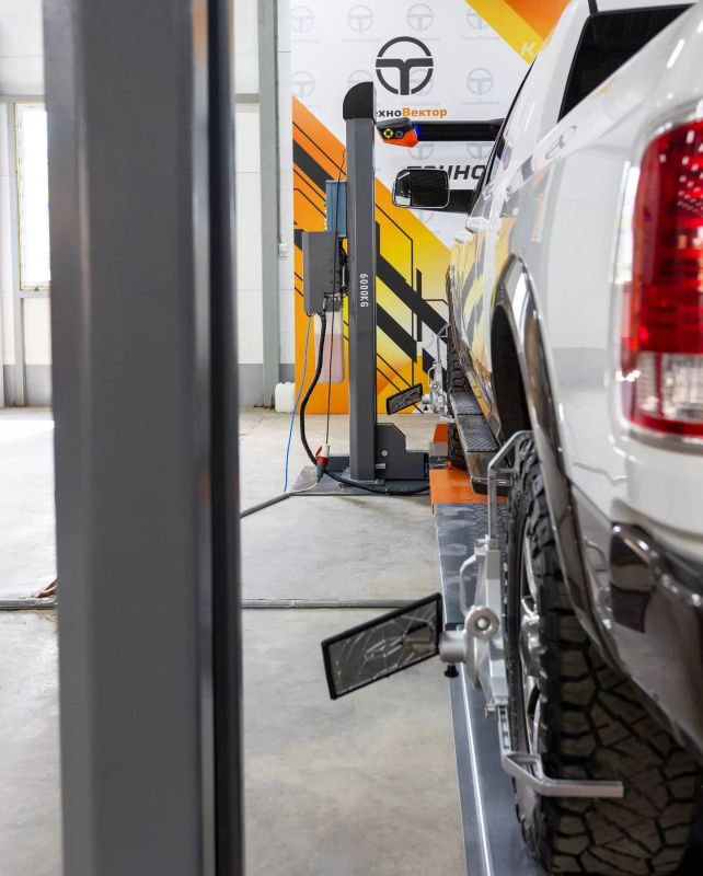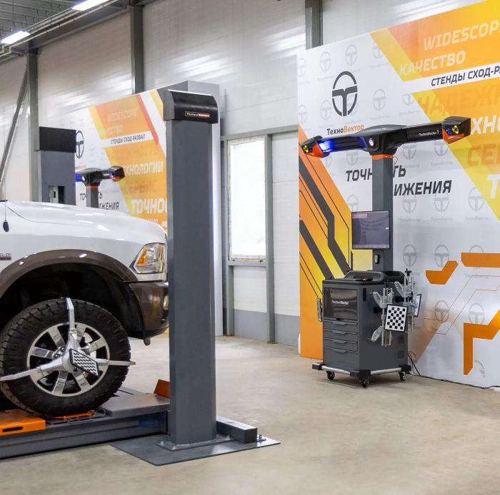 - Ниши для установки передних поворотных платформ для проведения регулировки углов установки колёс
