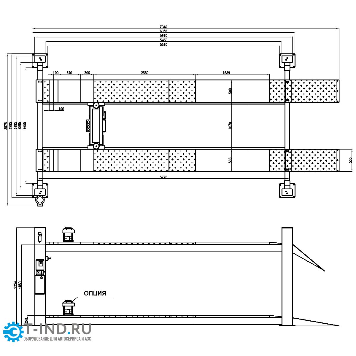 Подъемник четырехстоечный 6,5 тонн KraftWell KRW6.5, электрогидравлический, для слесарных работ, 380В