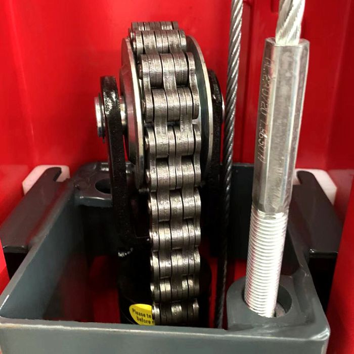 Подъемник оборудован системой безопасности: Механические замки безопасности, начиная с высоты около 40 см от пола, фиксируют положение кареток при подъеме за внутреннюю тыльную часть стоек. Для опускания подъемника замки безопасности должны быть выведены из зацепления с пазами внутри стойки вручную вытягиванием тросов блокировки кареток. При нажатии кнопки подъема замки автоматически включаются в активное состояние.