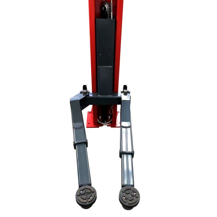 Синхронизация положения кареток подъемника осуществляется системой тросов (2 троса + 6 шкивов). Система блокировки балок подхвата предотвращает их случайные движения. На подъемнике применены прочные цепи и мощные опорные плиты. Гидравлические цилиндры приводятся в действие электрогидравлическим насосом, создающим давление в системе до 150 кг/см².