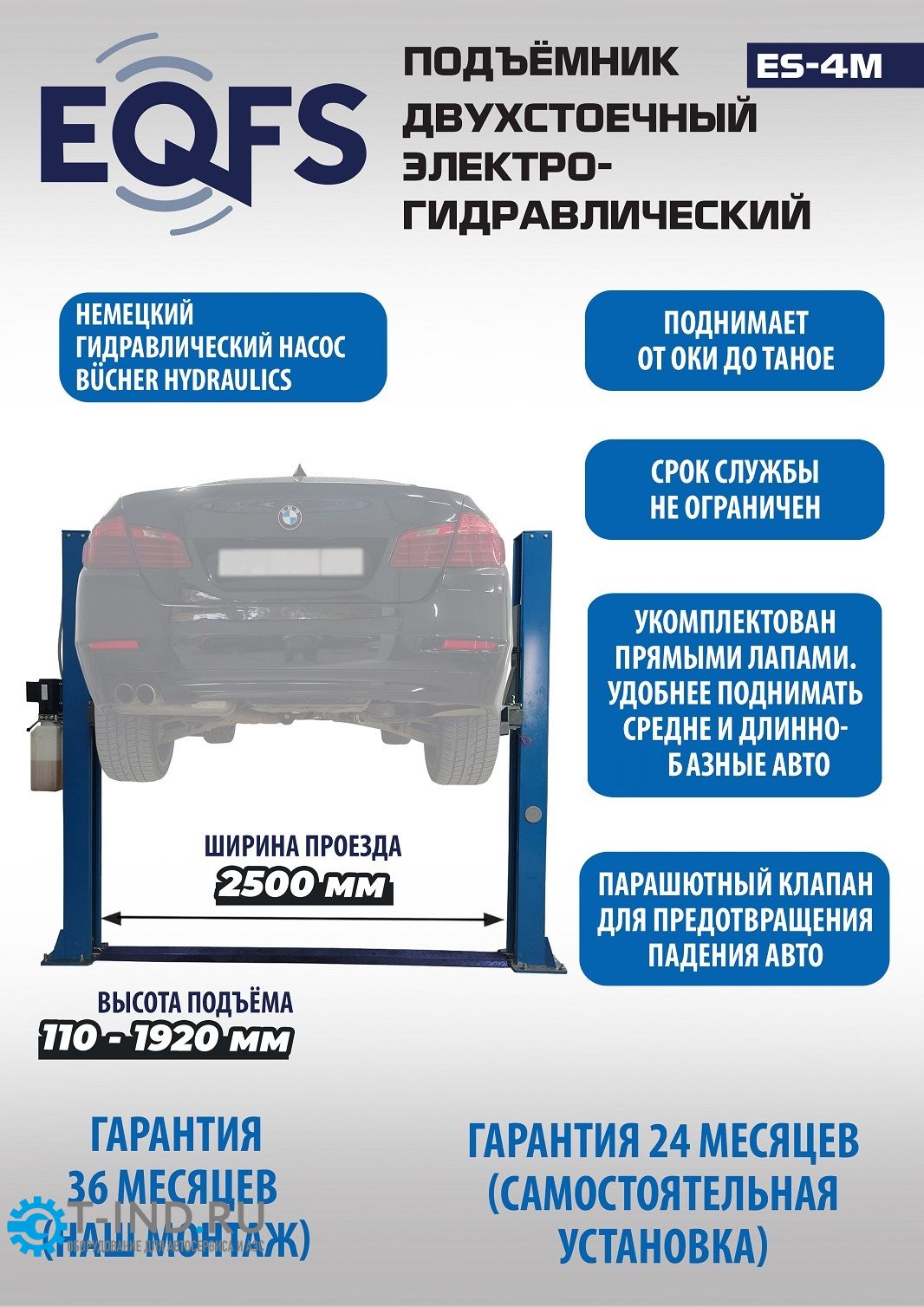 Подъемник двухстоечный автомобильный 4 тонны EQFS ES-4M, электрогидравлический, 220В
