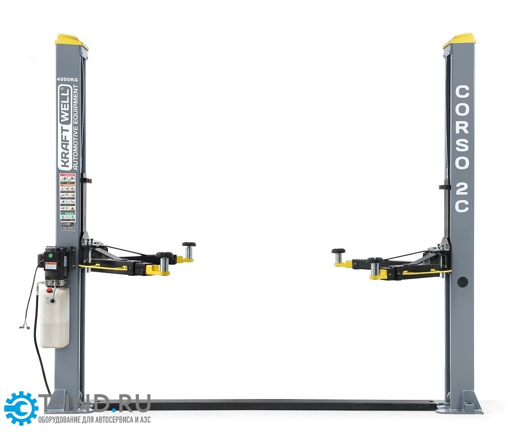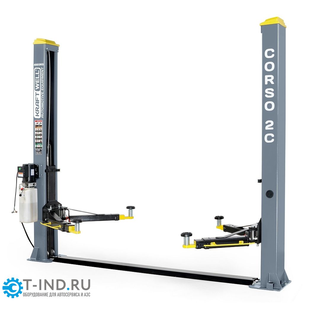 Подъемник двухстоечный автомобильный 4 тонны KraftWell CORSO 2C, электрогидравлический, 380В