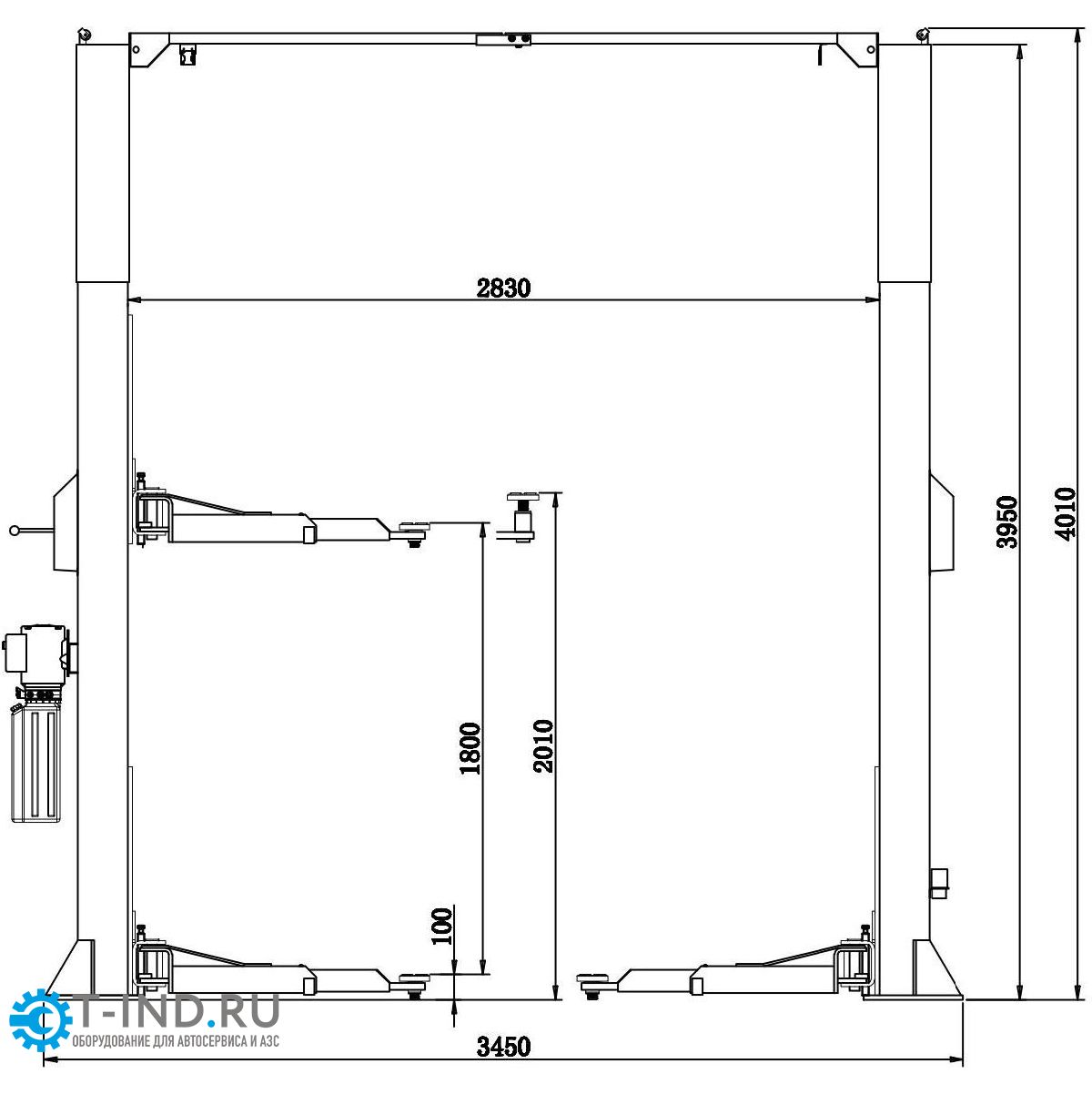 Грузоподъемность этого подъемника составляет 4000 кг. За подъем автомобиля отвечают два гидравлических цилиндра с цепным приводом каретки. Такой тип привода уменьшает нагрузку на гидроцилиндры и обеспечивает долговечность их работы. Каретки снабжены нейлоновыми ползунами, обеспечивающими плавное перемещение внутри стоек. Простая и, в тоже время, надежная система механических стопоров со снятием с одной стороны обеспечивает безопасное удержание автомобиля в поднятом состоянии на протяжении всего времени ремонта. Габаритная высота подъемника составляет 3650 мм и позволяет устанавливать его в помещениях с высотой потолка от 4 метров и выше.