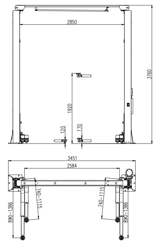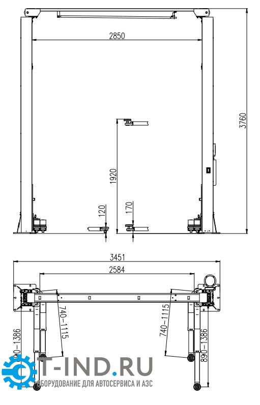 Подъемник двухстоечный автомобильный 4 тонны Nordberg N4121H-4T_380V, электрогидравлический, 380В