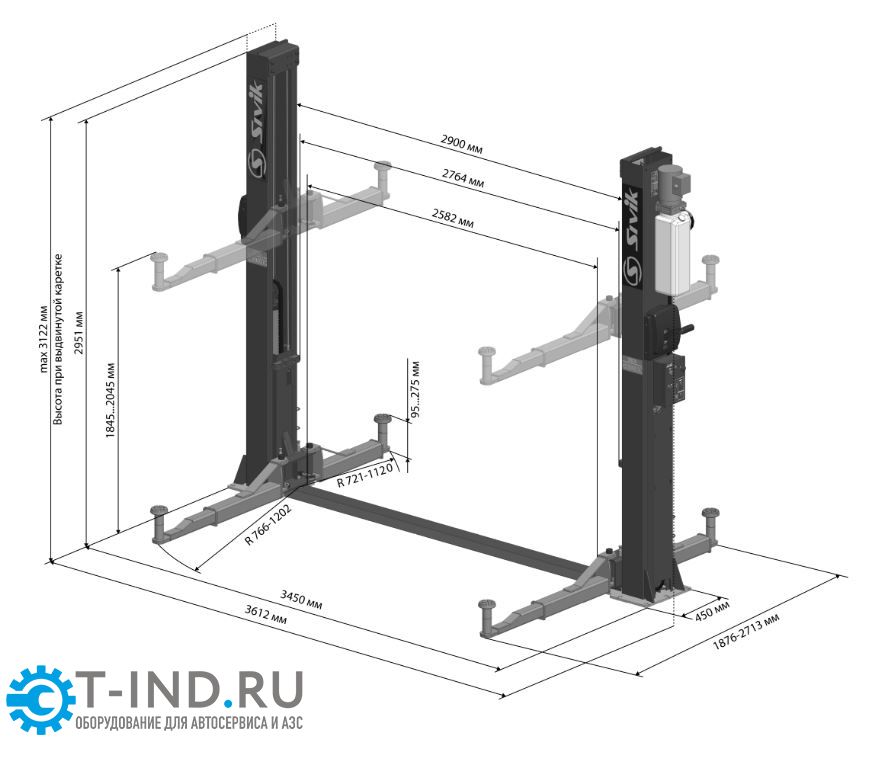 Подъемник двухстоечный автомобильный 4,2 тонны Sivik ПГА-4200-НС синий, электрогидравлический, 380В