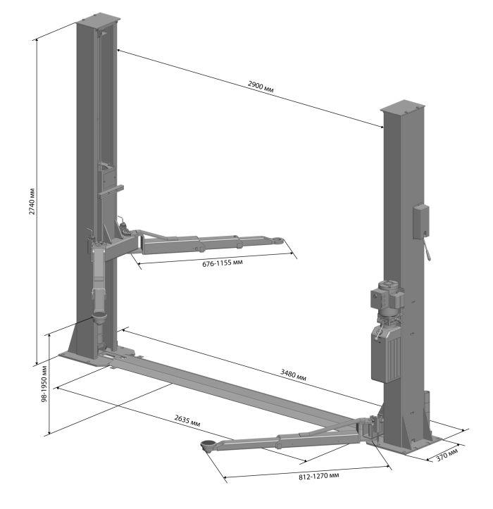 - Расстояние между колоннами увеличено до 2900 мм для работы с широкими авто