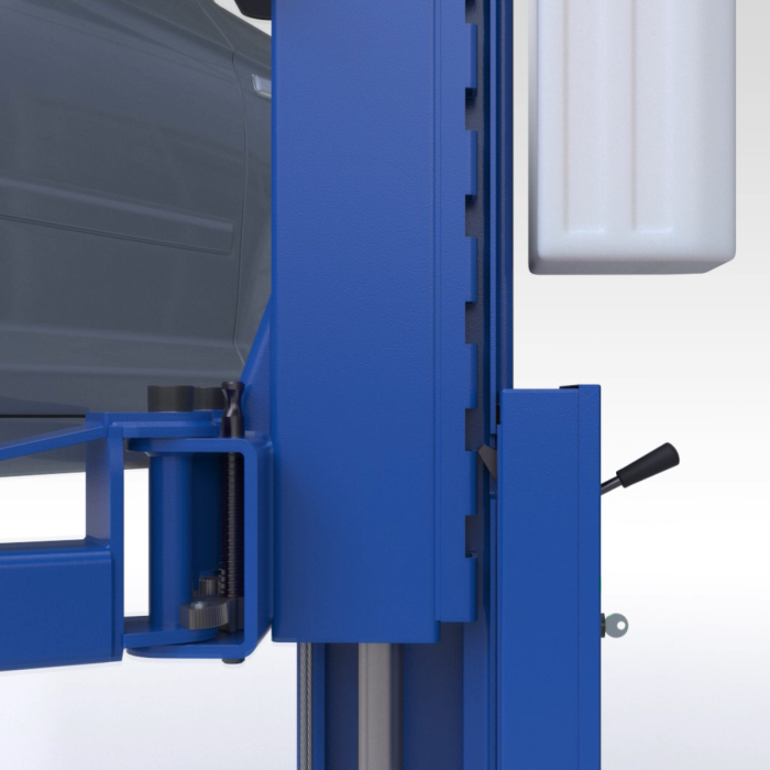 - Механические защелки безопасности установлены в каждой колонне. Снятие со стопоров выполняется при помощи одного удобного рычага на пульте управления.