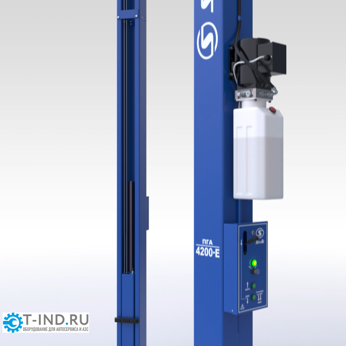 Электрогидравлический двухстоечный подъемник Sivik ПГА-4200-Е синий для легковых автомобилей и внедорожников общей массой до 4,2т. Надежная ассиметричная конструкция подъемника с верхней связью для комфортного и безопасного выполнения любых слесарных работ. Самая жесткая и устойчивая конструкция. Нет порога между колоннами. Свободный заезд автомобиля по ровному полу. Нет ограничений при работе со вспомогательным мобильным оборудованием под автомобилем: тележки, трансмиссионные стойки и пр. Система синхронизации, расположенная сверху, не подвержена износу из-за контакта с влагой и грязью