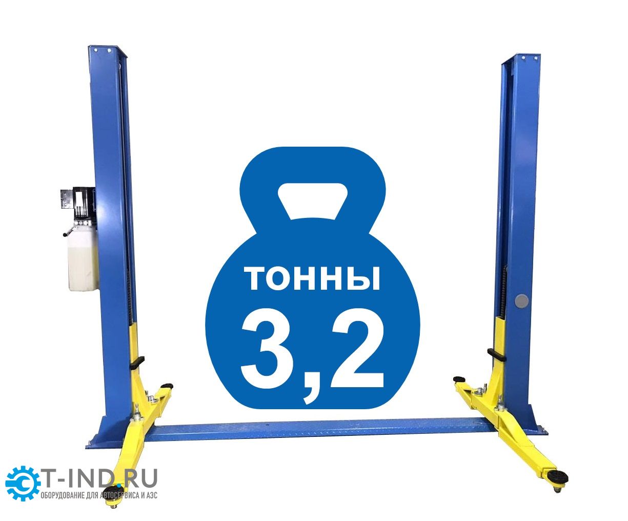 Немецкий гидравлический насос- "Bucher Hydraulics". Г/П -3,2т. Конструктивно - Т-4. Отличия: Прямые лапы(передние и задние). Уменьшен диаметр рабочих цилиндров и тросов. Все остальное идентично Т-4. Подъём 110÷1920 мм. Ширина между стойками – 2806 мм. 220/380В.Подхваты (лапы) – 4 прямых. Длина (min-max) лапа короткая 730-1080 мм; лапа длинная 840-1300 мм. Ширина проезда – 2500 мм. В комплекте гидростанция "Bucher Hydraulics". Съем со стопоров – ручной. Тросом на каждой колонне. Поднимает ВСЁ, кроме бронированных автомобилей.Срок службы подъемника – не ограничен. Цвет подъемника синий, каретки желтые.