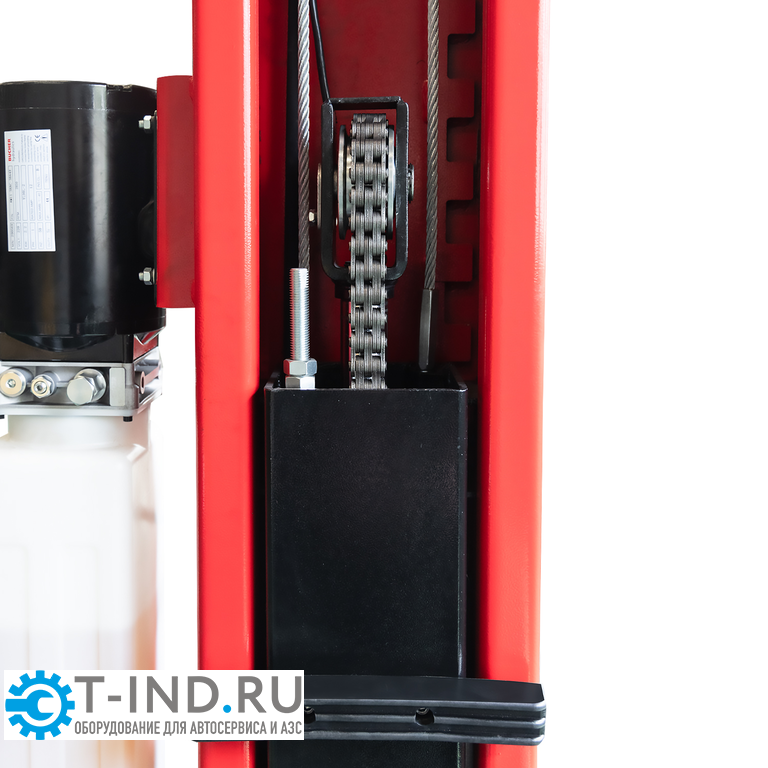 Подъемник электрогидравлический красный 4т., 2-х стоечный, 220В с верхней синхронизацией и ручным двойным спуском, GTE-B201.