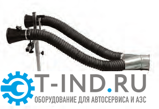 Подкатная система для вытяжки выхлопных газов, для двух труб с резиновыми насадками, с регулировкой положения по вертикали и горизонтали, Шланг "Eurogas" 125мм, диаметр тройника 125мм