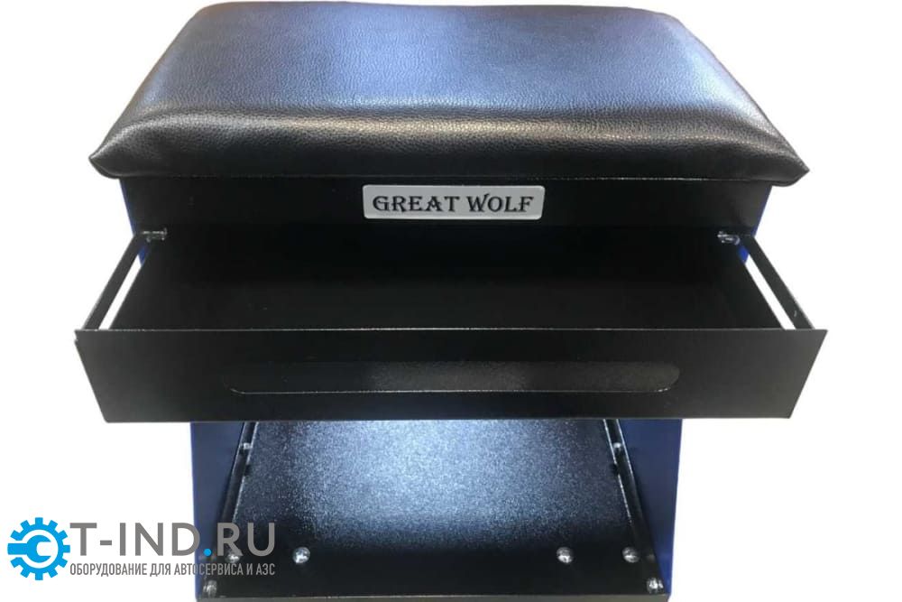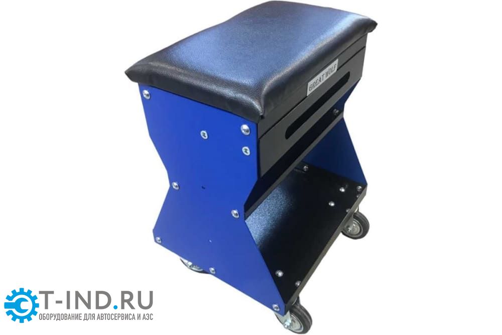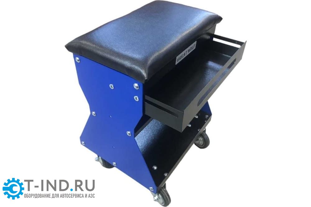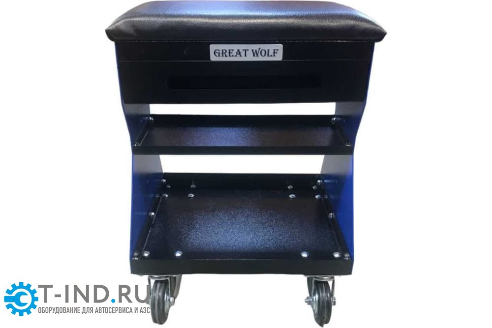 Передвижное сиденье на колесах Great Wolf GWT-B1 предназначено для ремонтных работ. Цвет - синий. Рассчитано на нагрузку до 130 кг. Имеет 2 полки и выдвижной ящик для инструментов, а также есть возможность для установки дополнительных полок или кронштейнов по бокам.