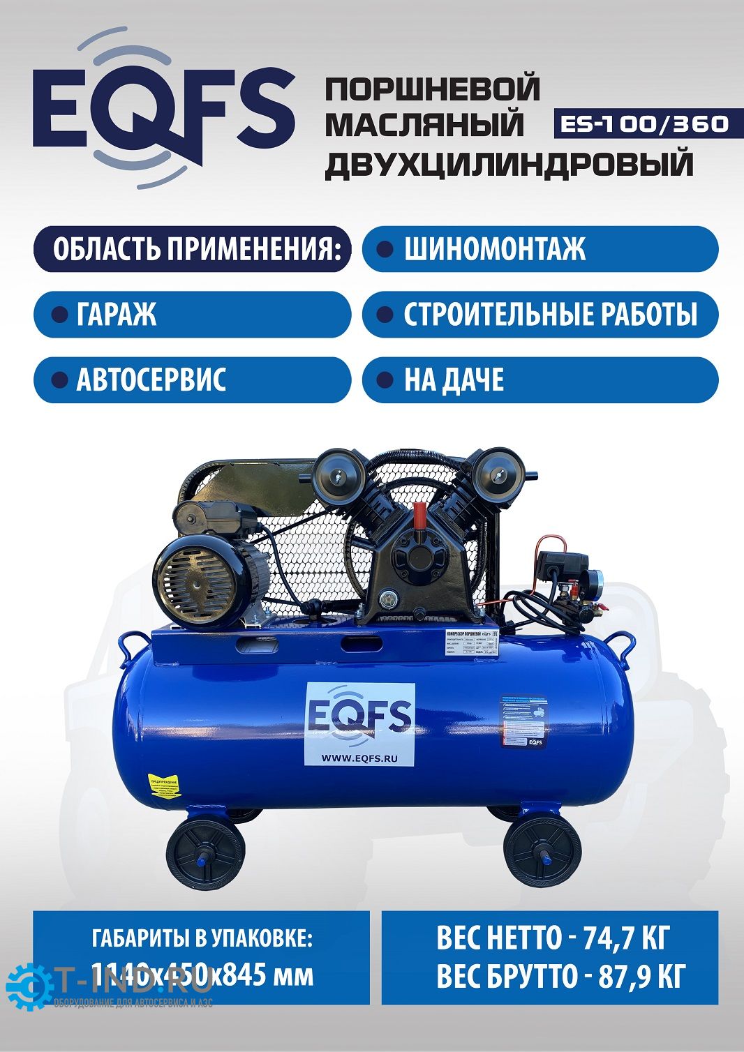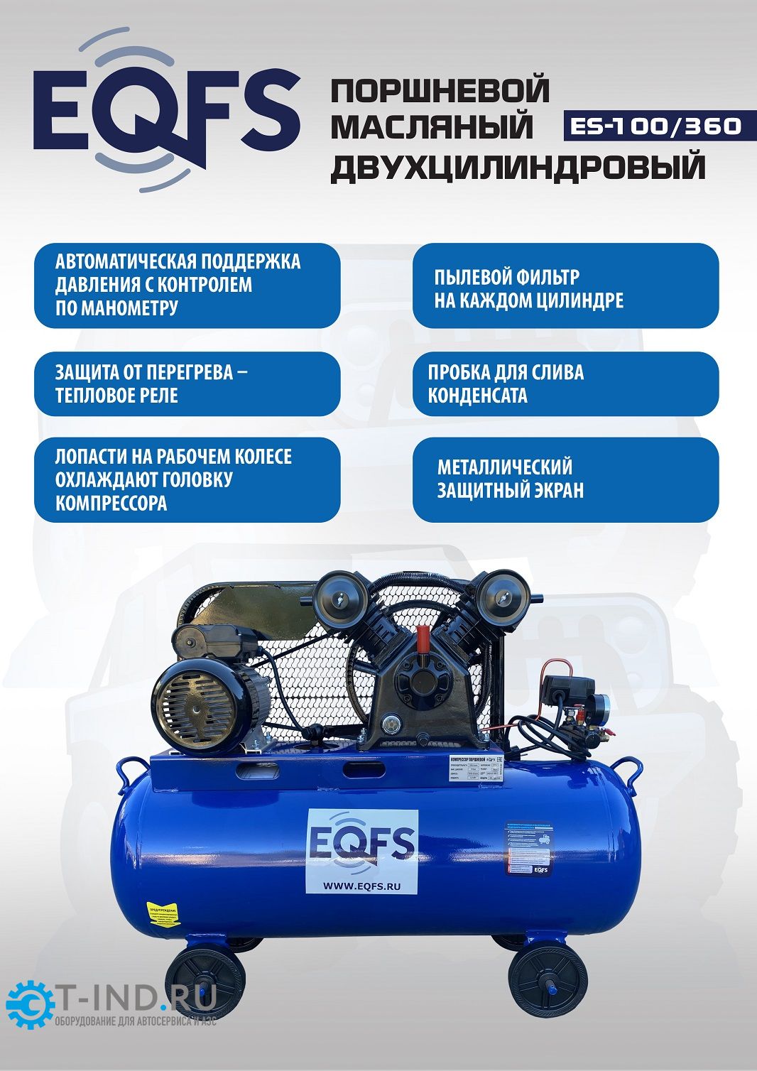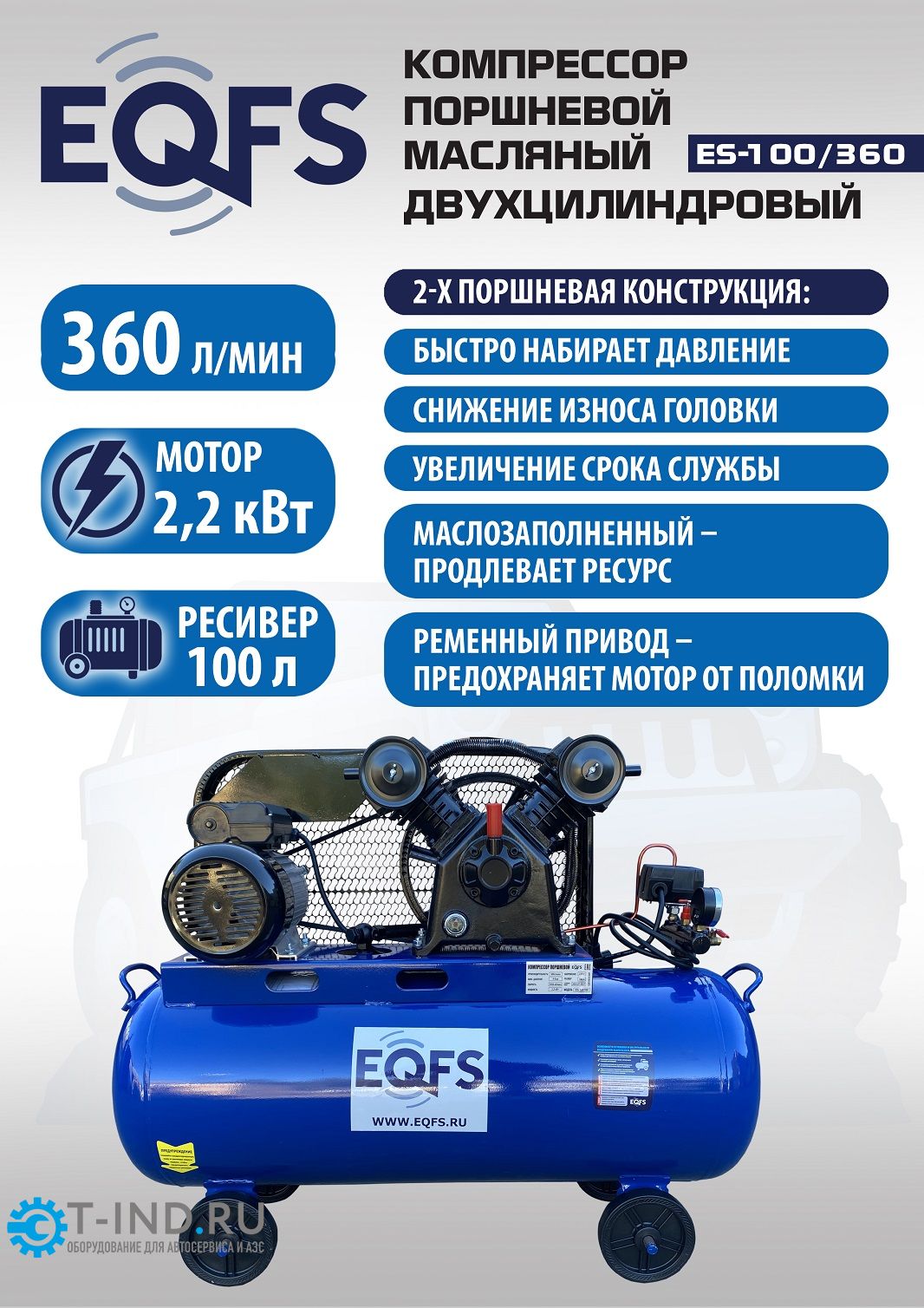 Поршневой компрессор EQFS ES-100/360, ременной, масляный, 220В, 360л/мин, 100л