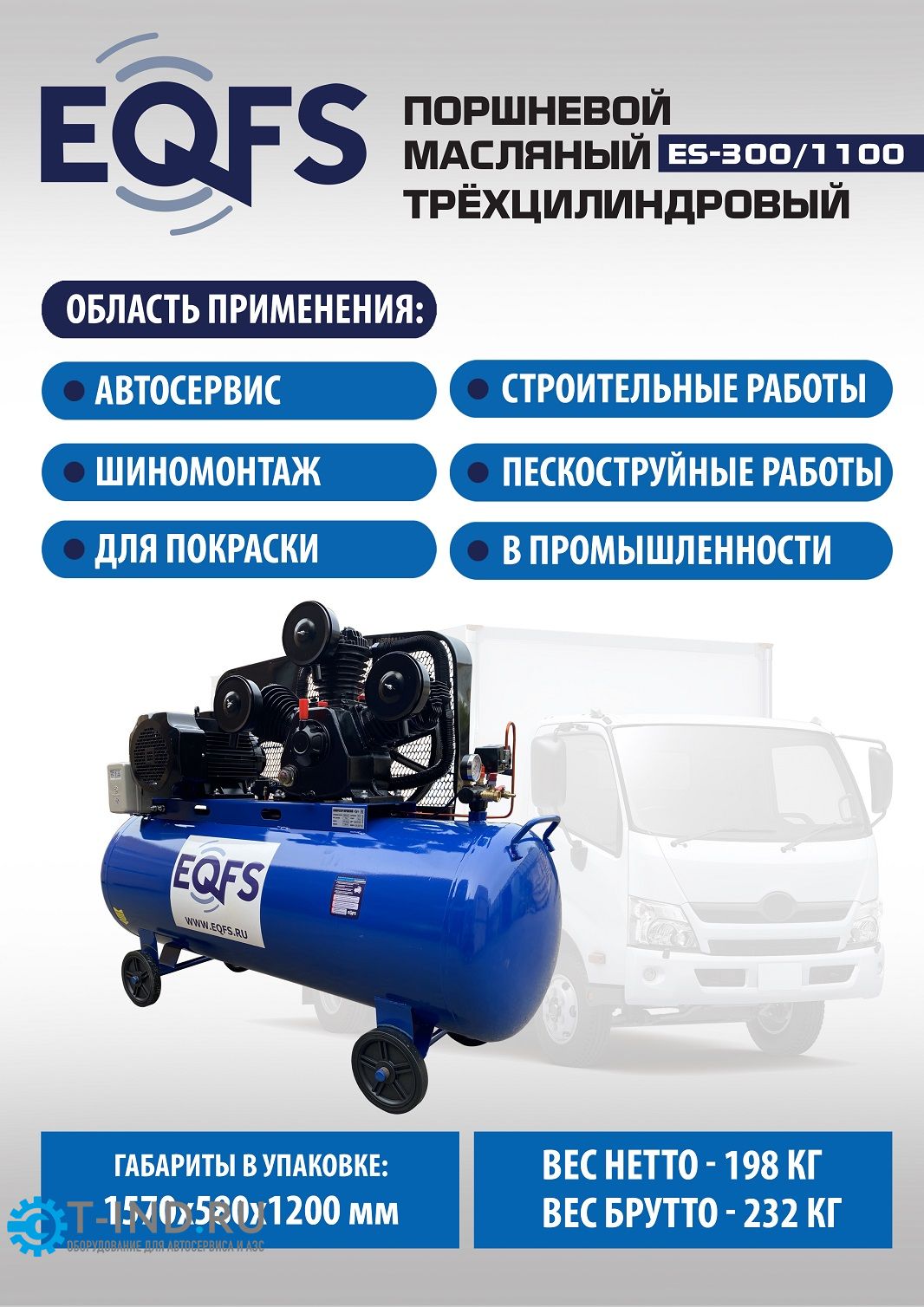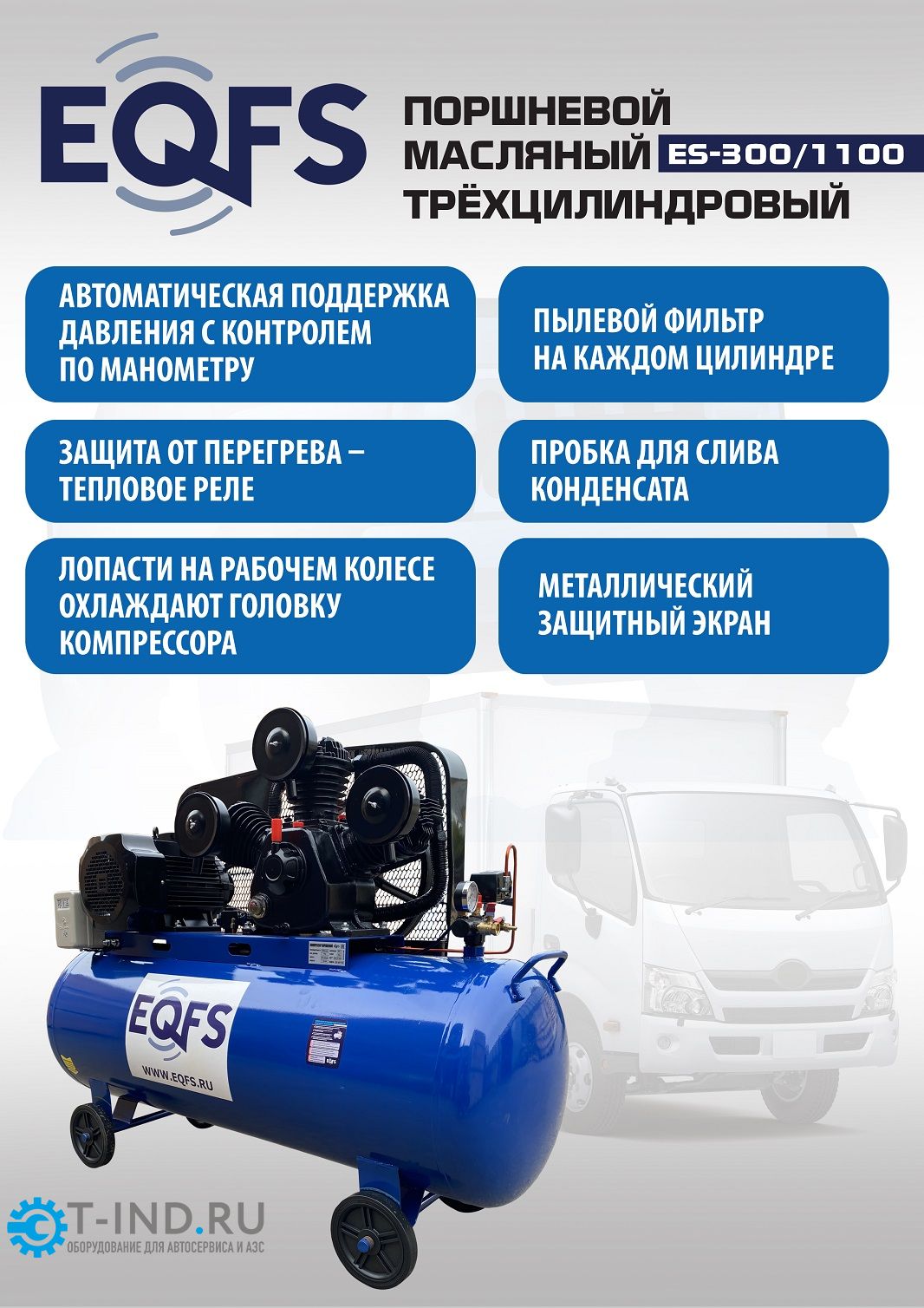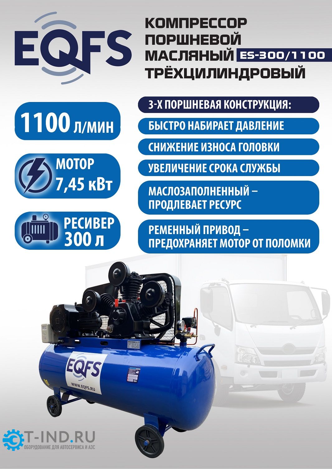 Поршневой компрессор EQFS ES-300/1100, ременной, масляный, 380В, 1100л/мин, 300л