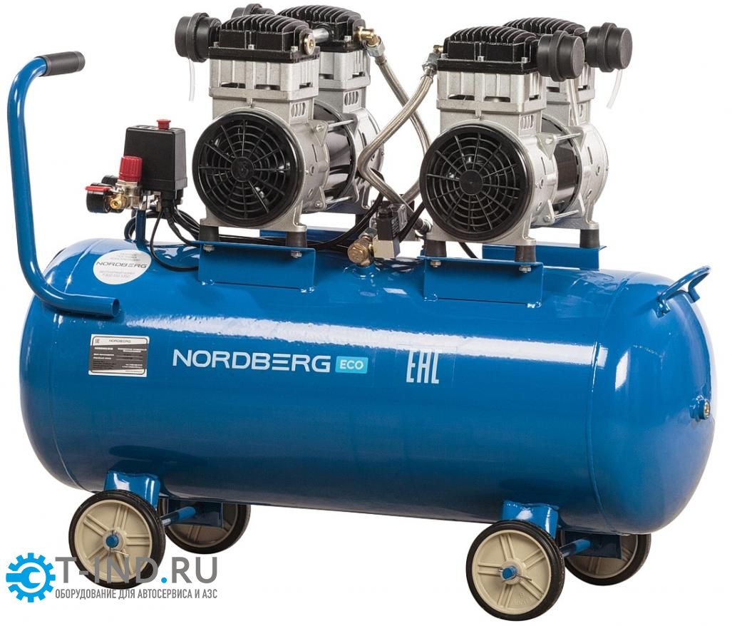 Поршневой компрессор NORDBERG NCEO100/400, прямой привод, безмасляный, 400л/мин, 100л, 220В