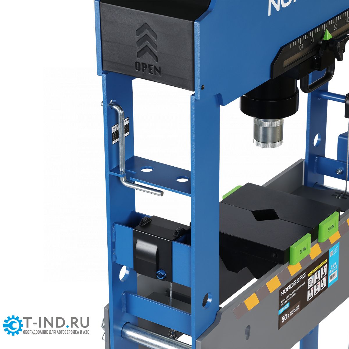 - Усилие 50 тонн — позволяет использовать пресс в промышленности и при обслуживании тяжёлой техники;