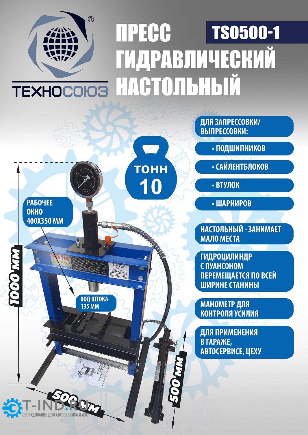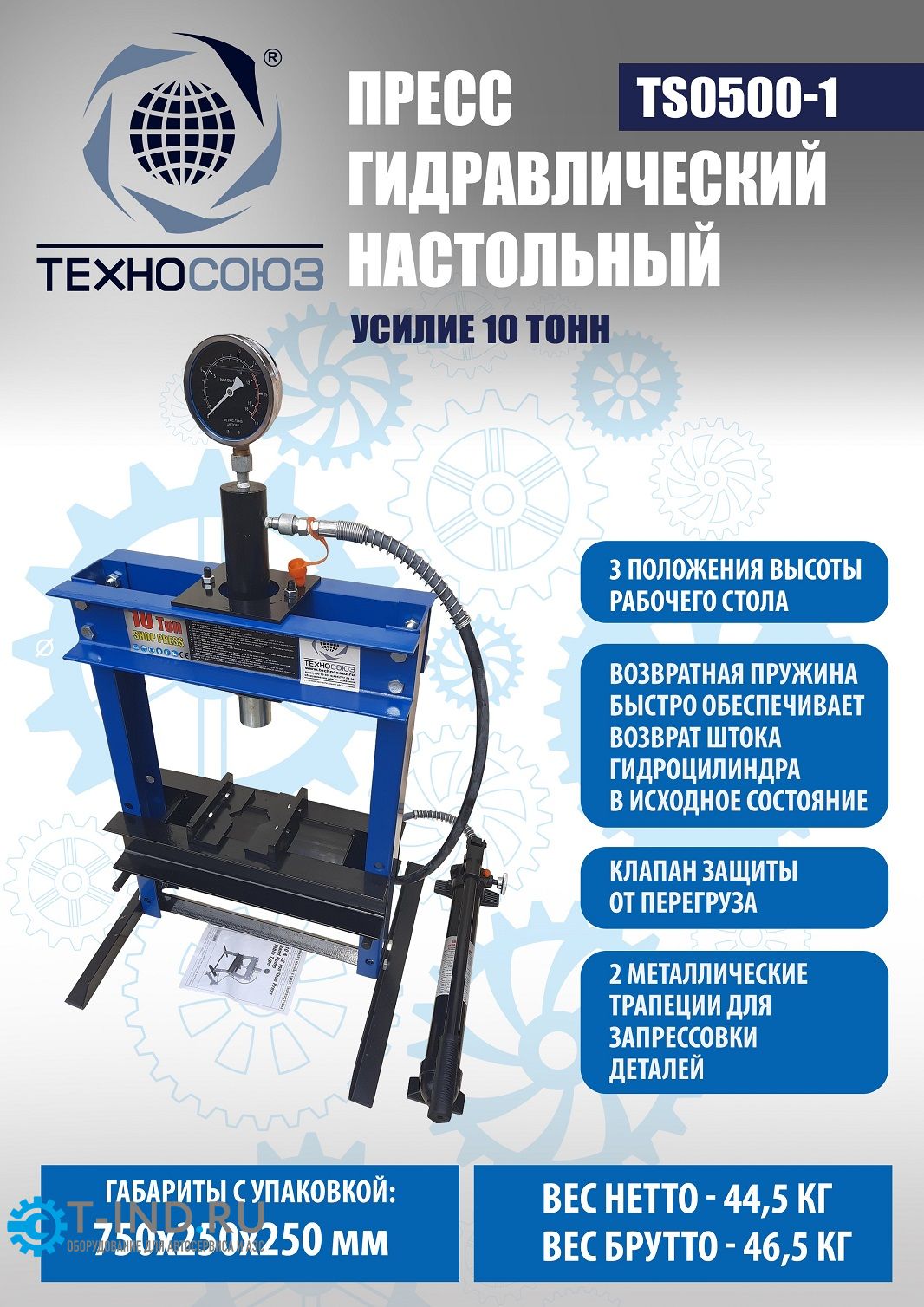 Пресс гидравлический ручной 10 тонн Техносоюз TS0500-1, настольный, гаражный