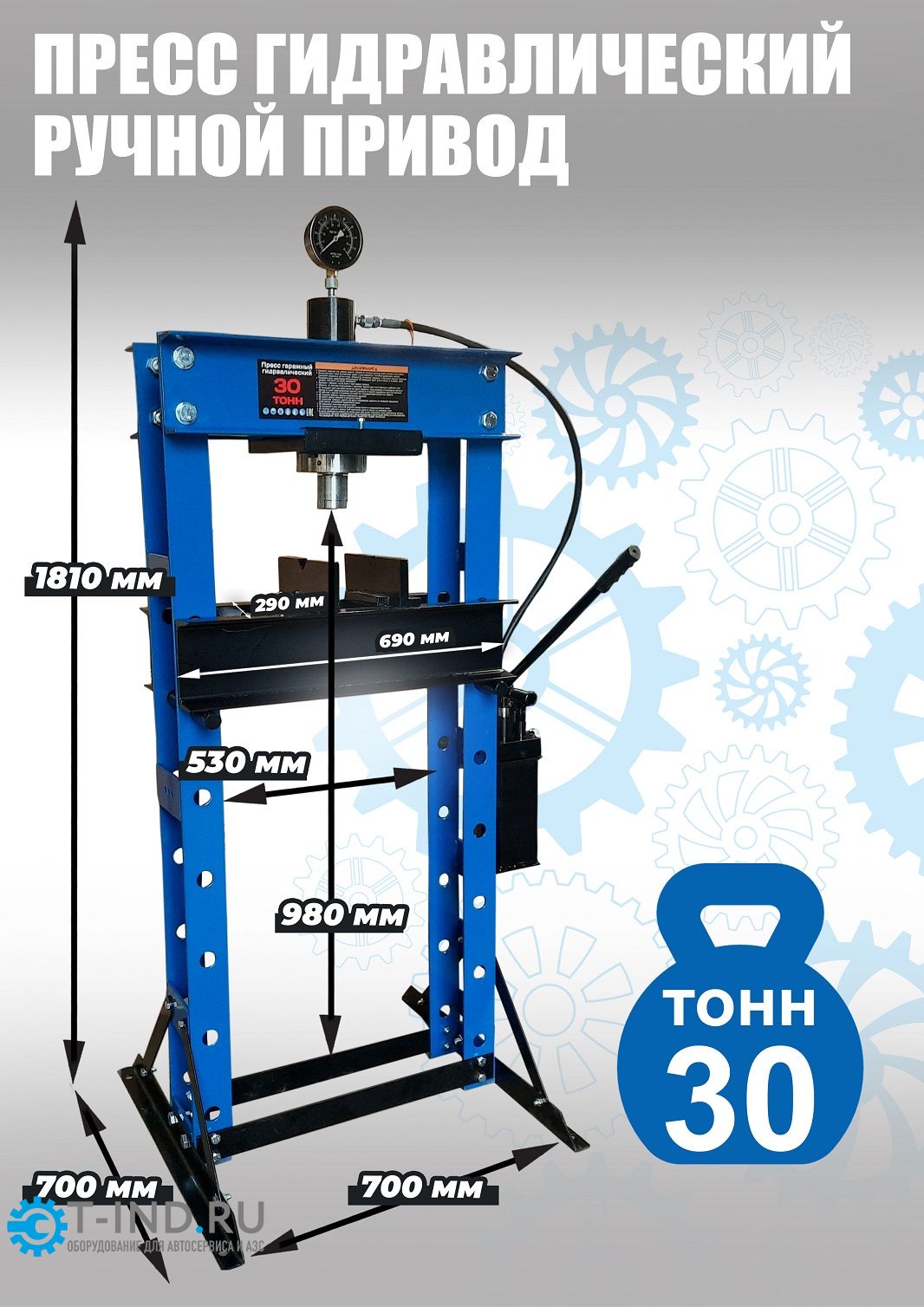 Пресс гидравлический 30 тонн Техносоюз TS0500-4, ручной, напольный, гаражный
