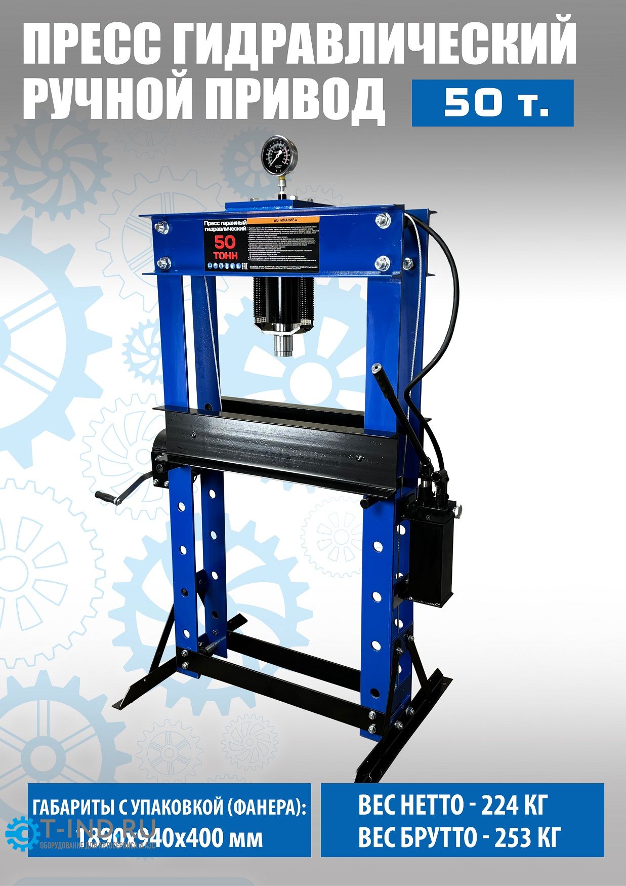 Пресс гидравлический ручной 50 тонн Техносоюз TS0500-6, напольный, гаражный