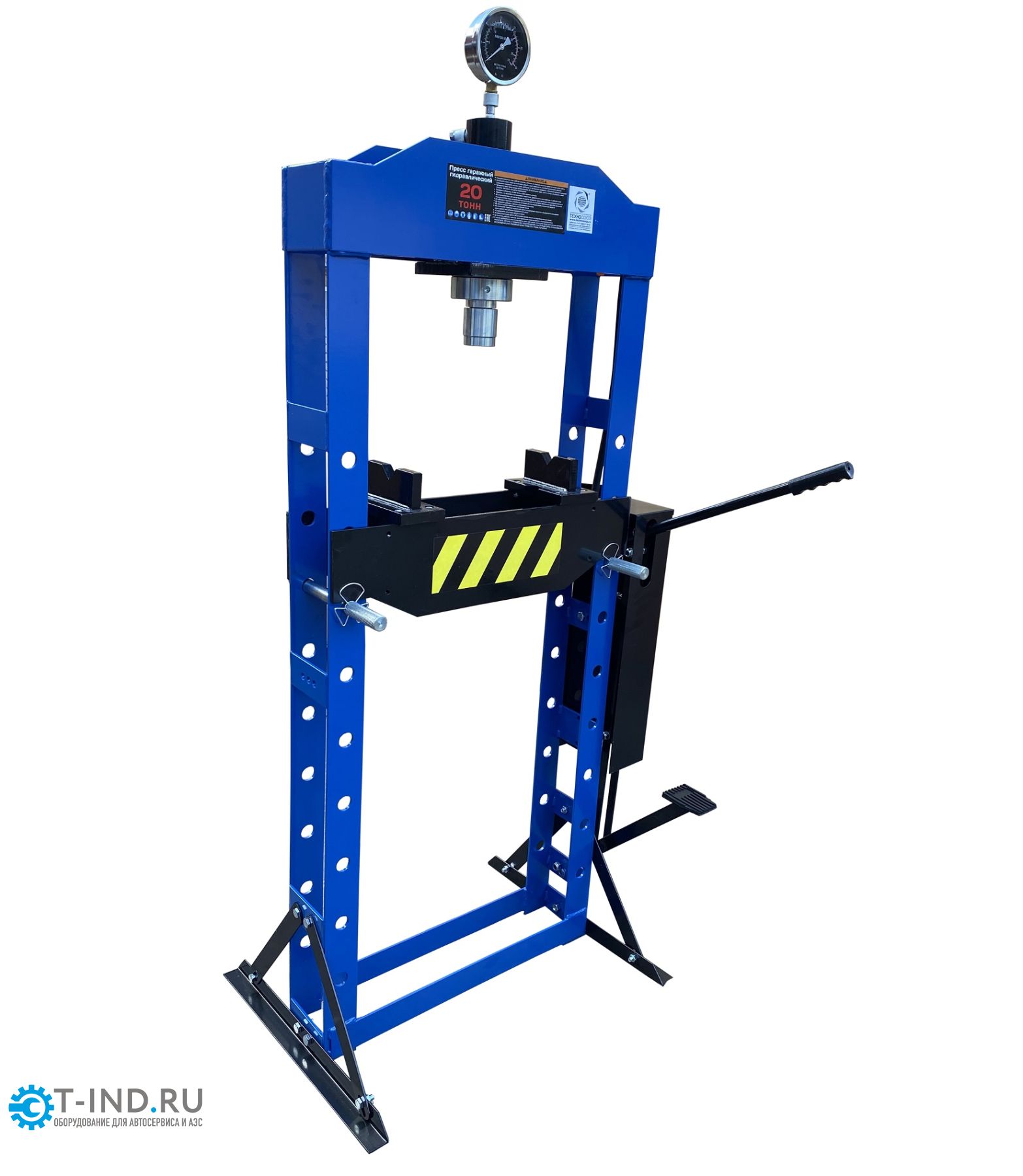 Пресс пневмогидравлический 20 тонн Техносоюз TS0500BF-20. Полностью сварная рама, усилие 20 тонн, управление ручное/ножное, клапан защиты от перегрузки, манометр, гидроцилиндр с пуансоном перемещается по всей ширине каретки. Ход поршня 145 мм. Рабочее окно: 540х1018 мм. Рекомендуется для выпрессовки подшипников, деталей машин, втулок и т.п. в автосервисе, Гараже и СТО.