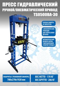 Пресс пневмогидравлический 30 тонн Техносоюз TS0500BA-30, ручной, напольный, гаражный