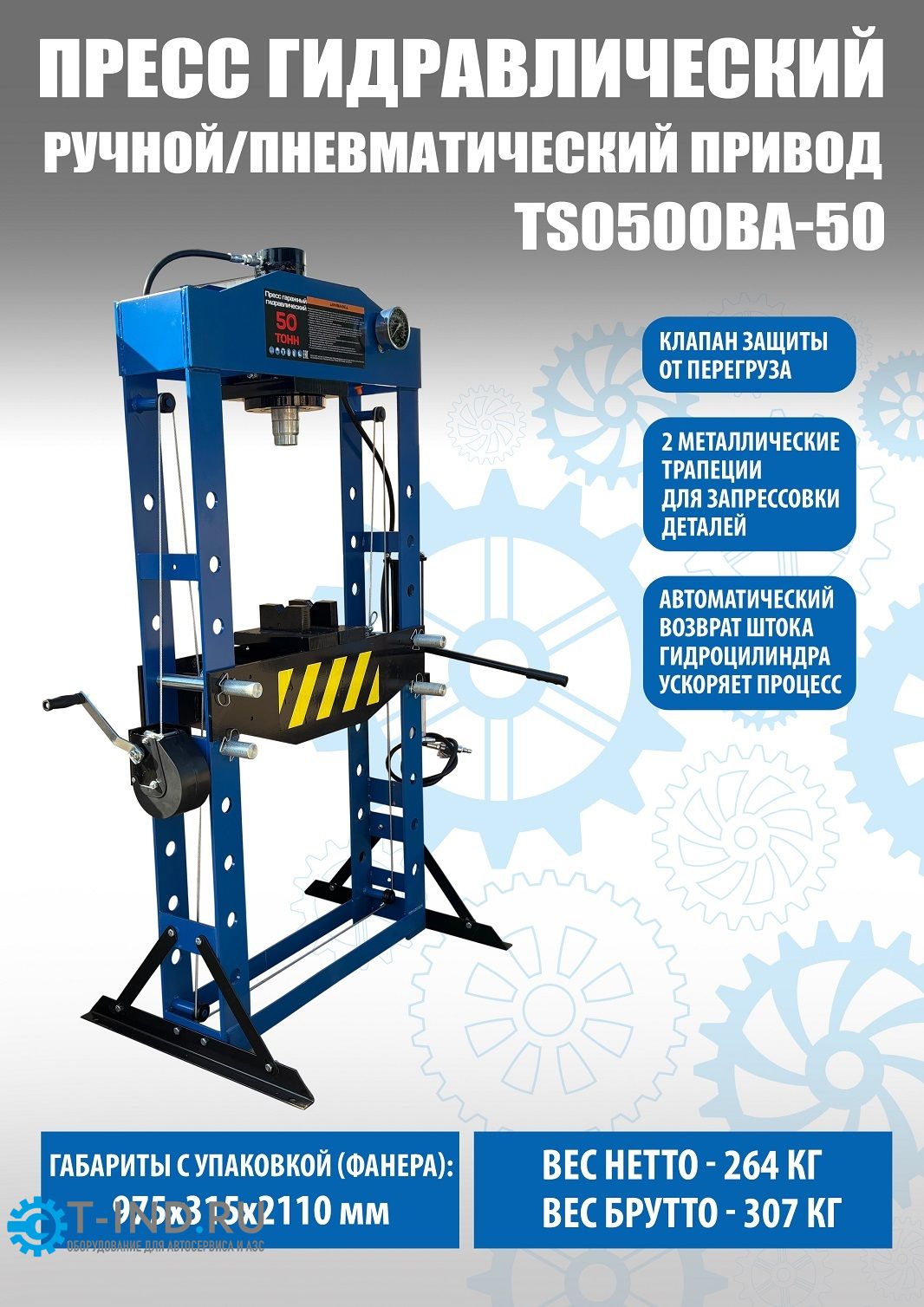 Пресс пневмогидравлический 50 тонн Техносоюз TS0500BA-50, ручной, напольный, гаражный