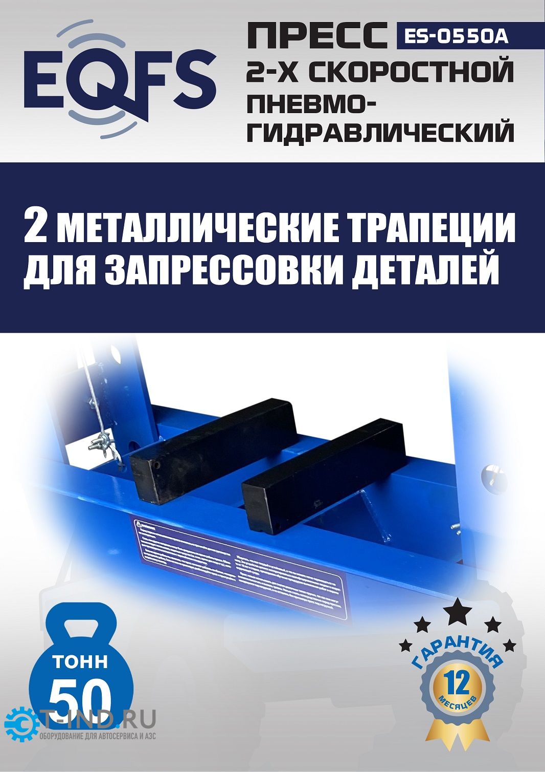 - Пресс укомплектован гидравлическим ручным насосом и пневмогидравлическим с максимальным усилием 50 тонн.