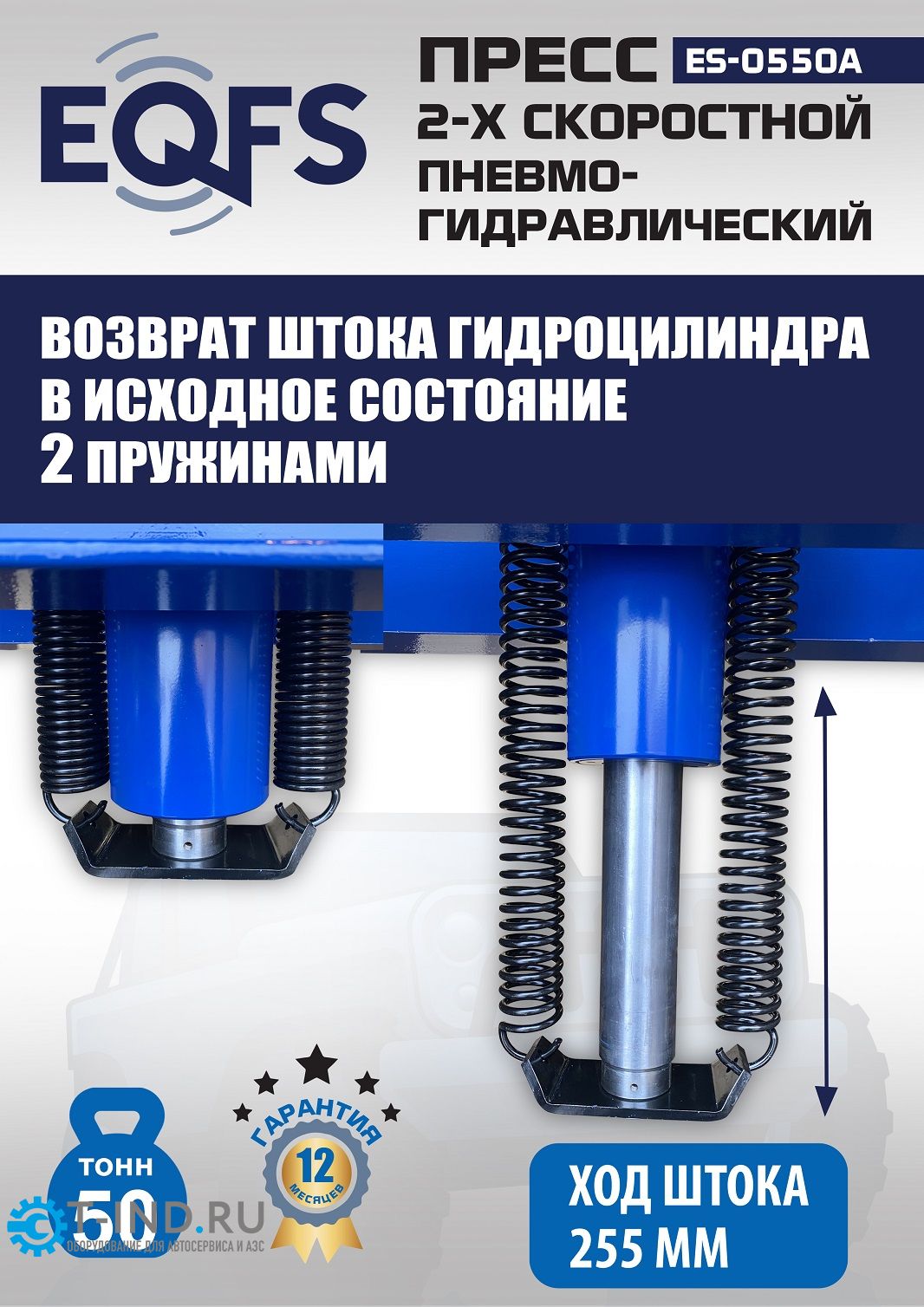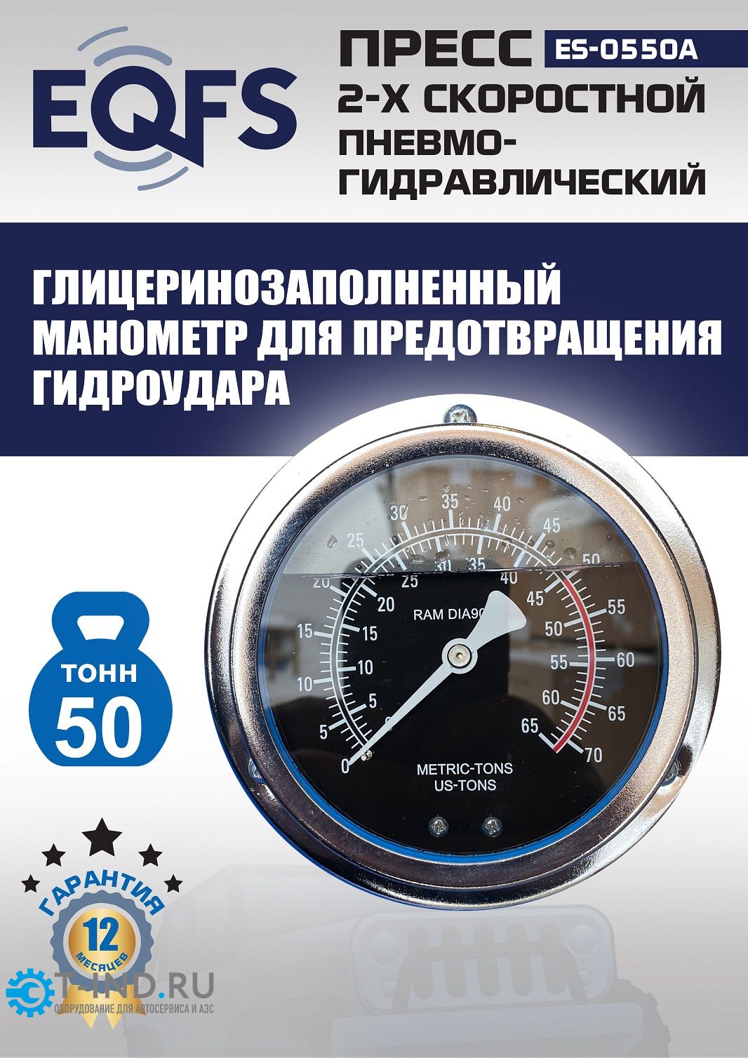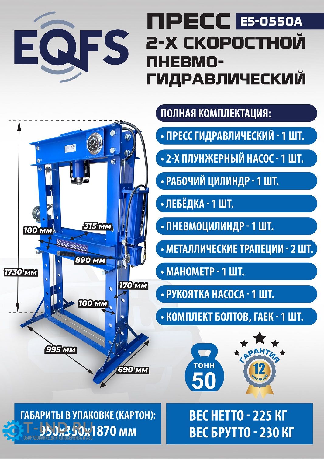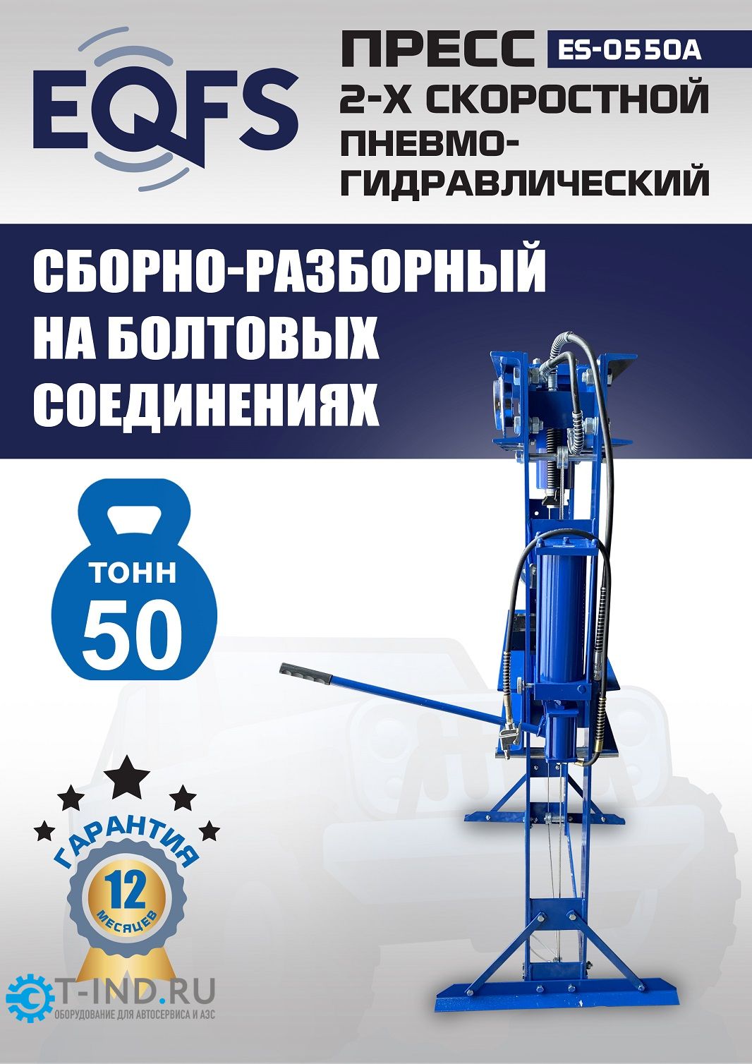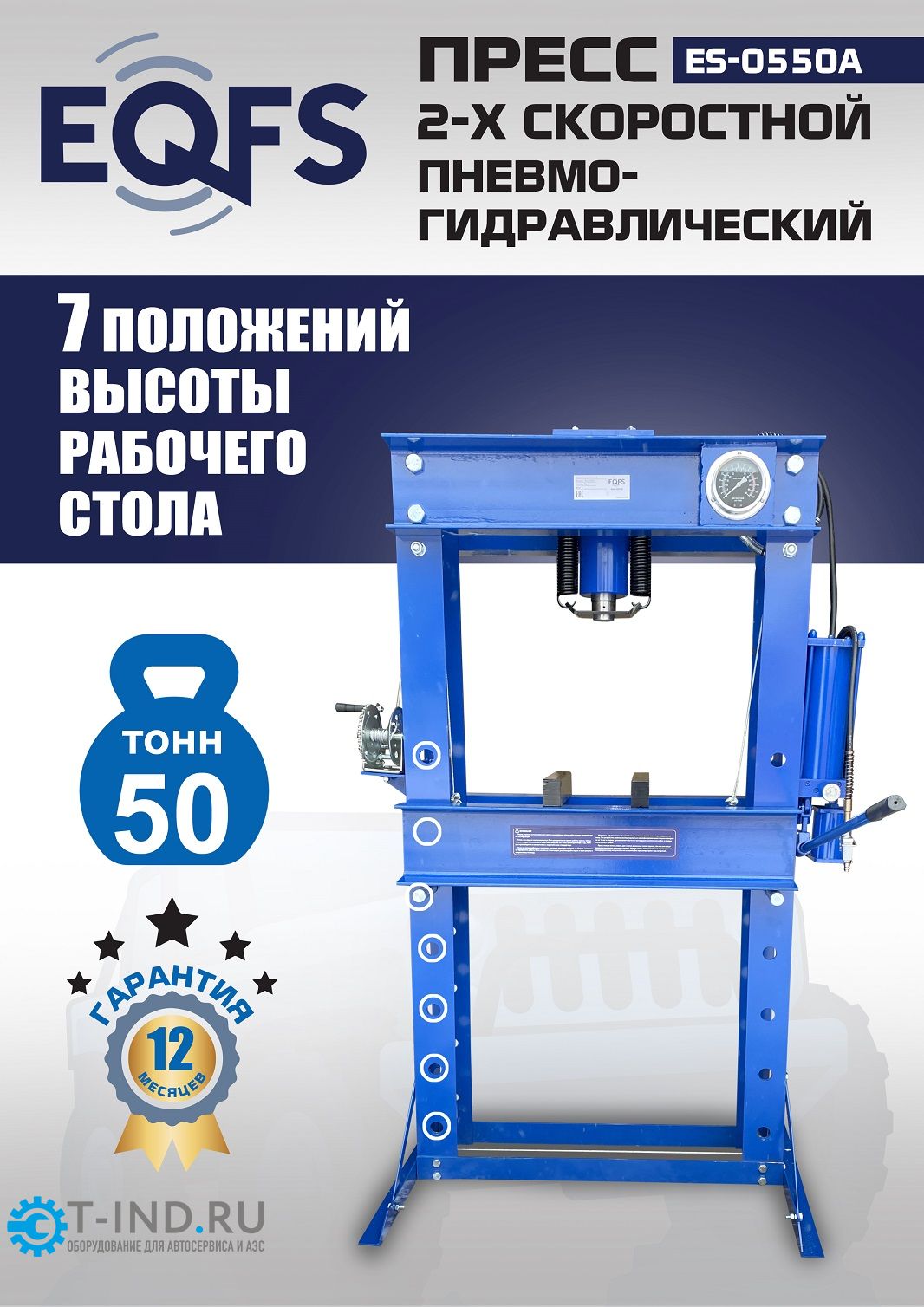 Пресс пневмогидравлический ручной 50 тонн EQFS ES-0550A, напольный, гаражный