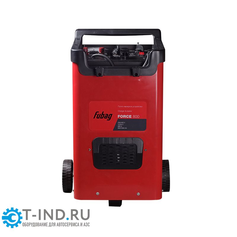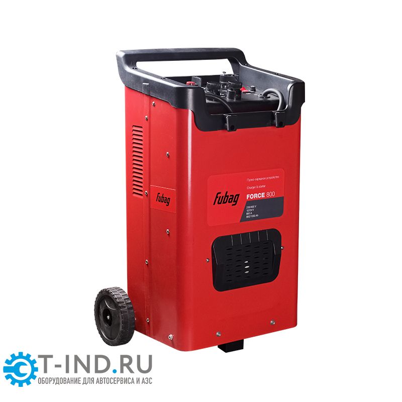 Мощное пуско-зарядное устройство FUBAG FORCE 800 работает на напряжении 380 / 220 В при максимальном токе пуска 680 А и токе зарядки 30-100 А. Устройство предназначено для использования в течение всего года в крупных автохозяйствах для быстрой зарядки кислотных аккумуляторов и запуска всех типов легковых автомобилей, фургонов, грузовиков или тракторов. Пуско-зарядное устройство FORCE 800 может зарядить даже полностью разряженную аккумуляторную батарею или группу аккумуляторов одинакового напряжения (12 или 24 В) одновременно.