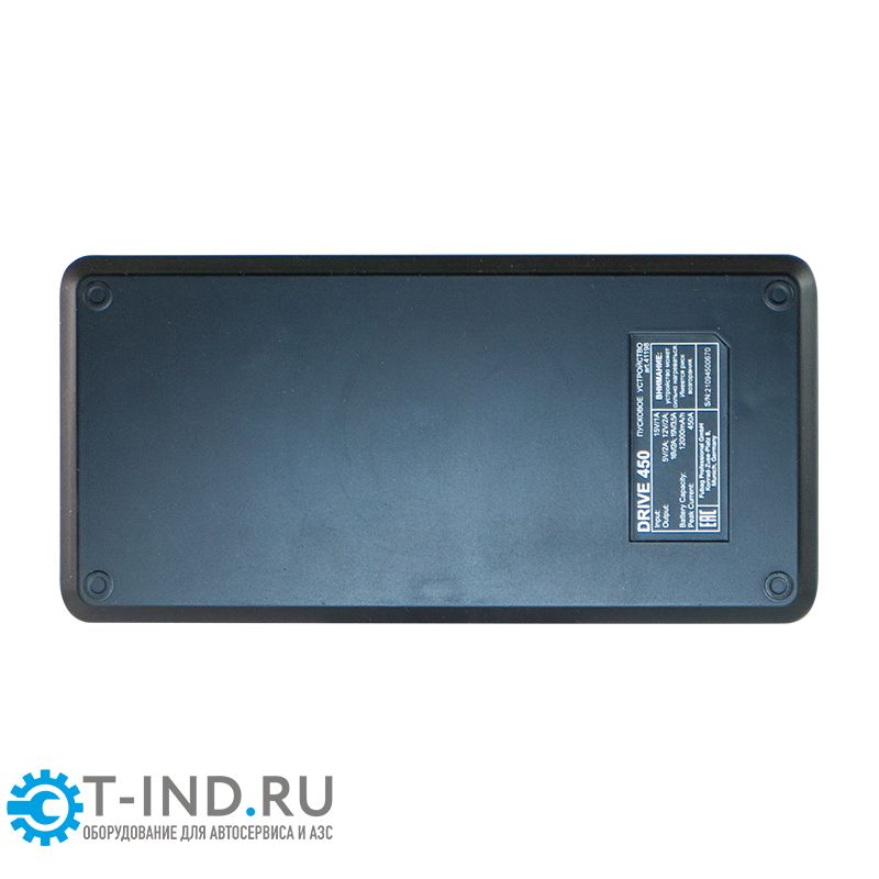 Емкость встроенного аккумулятора в 12000 мА/ч позволяет осуществить более 45 запусков до полного разряда. При малых размерах и не большом весе пусковое устройство DRIVE 450 способно выдавать силу пускового тока 220 А, а пикового – 450 А, что позволяет запускать двигатели до 3,5 литров даже зимой. Для удобства эксплуатации в темное время суток в корпус изделия встроен светодиодный фонарь. В пусковом устройстве Drive 450 есть полезный режим BOOST (ускоренная зарядка аккумулятора большим током для уверенного пуска двигателя).