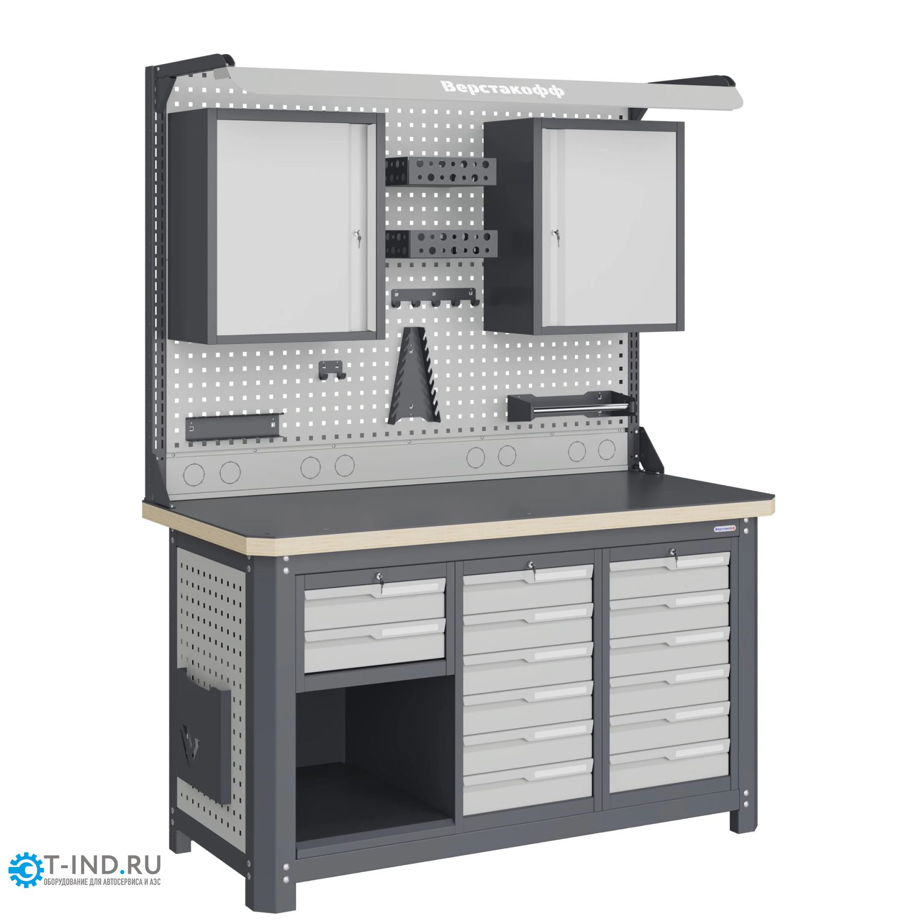Рабочее место Верстакофф MCN 1552.S266.2-2FR, 3 тумбы, 2+6+6 ящиков, с дв. экраном, подсветка