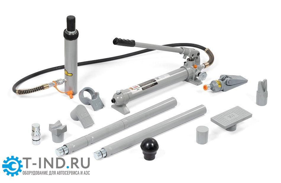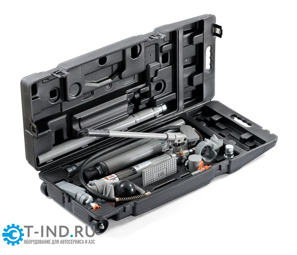При проведении кузовного ремонта часто требуется выправить небольшие вмятины, не прибегая к помощи стапеля или аппарата точечной сварки. Лучшим решением в данном случае станет применение набора гидравлических растяжек KRWPH10W или, как его еще называют, рихтовочный комплект. Входящие в комплект насадки различной формы справятся с любым типом вмятин, а удлинители гидравлического цилиндра позволят без труда подобрать необходимую длину для доступа к точке, где требуется правка. Гидравлический насос развивает усилие 10 тонн, которого хватает, чтобы справиться с самыми сложными вмятинами. Комплект поставляется в удобном пластиковом кейсе на колесах. Все элементы изготовлены из высококачественных материалов.