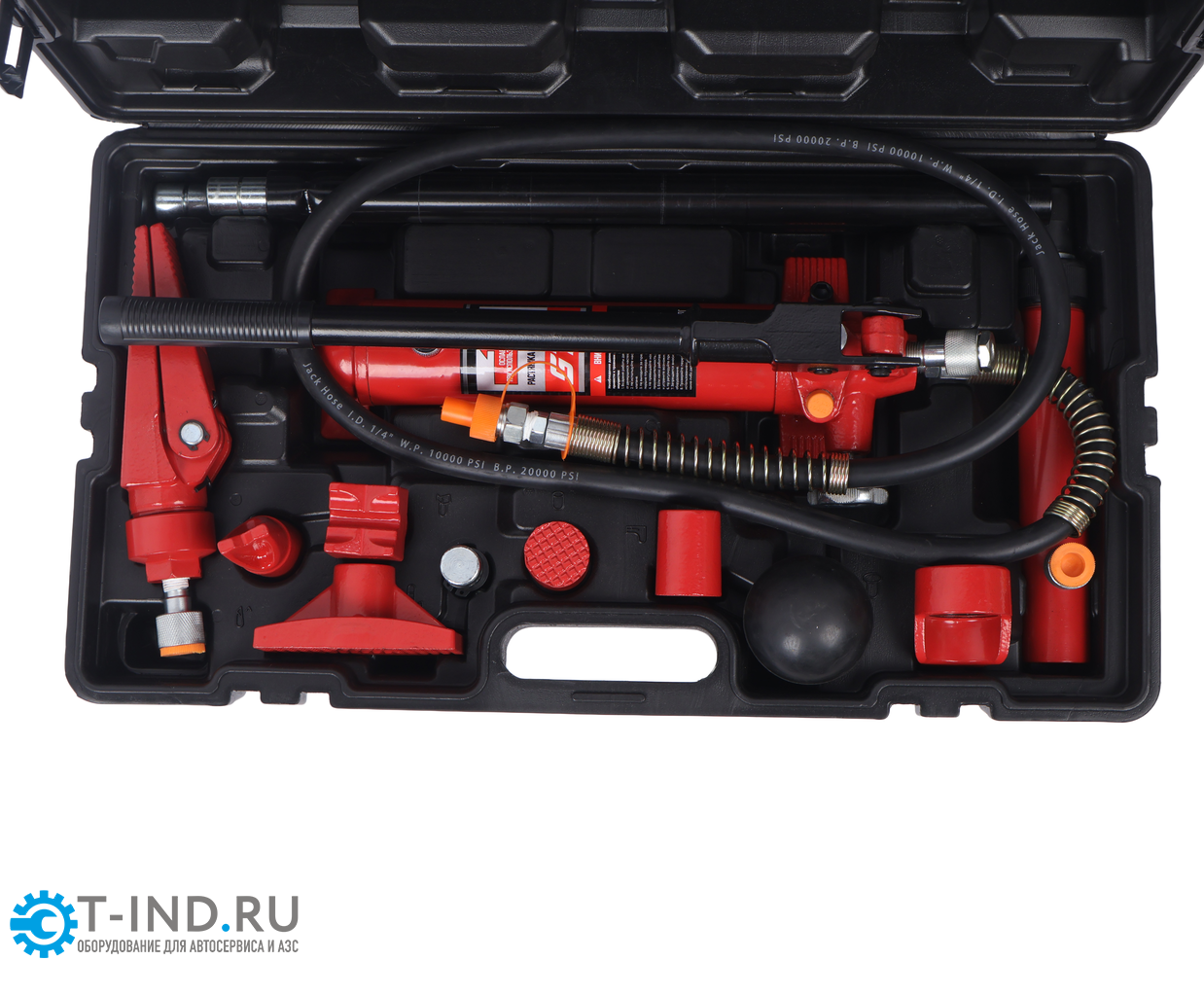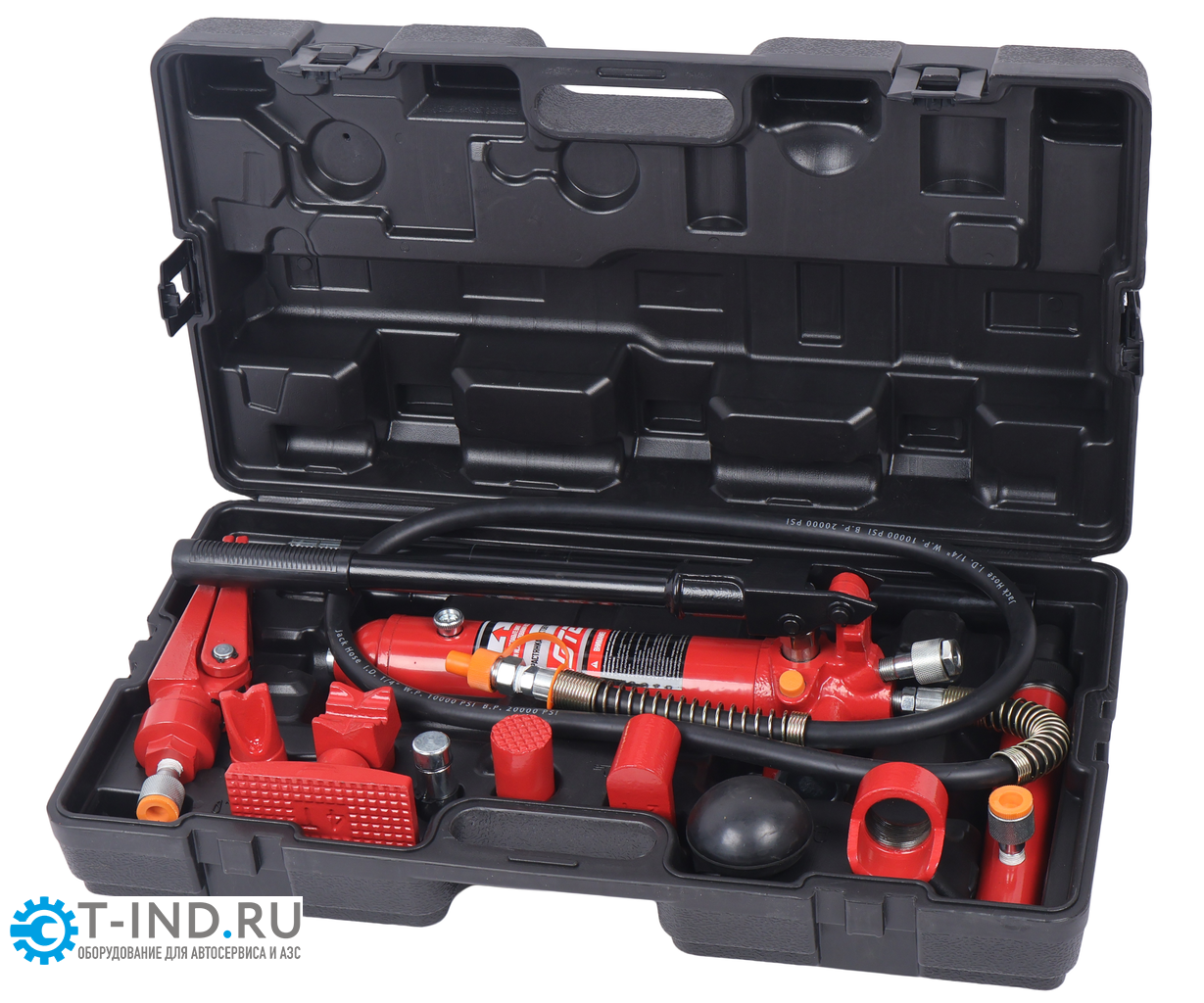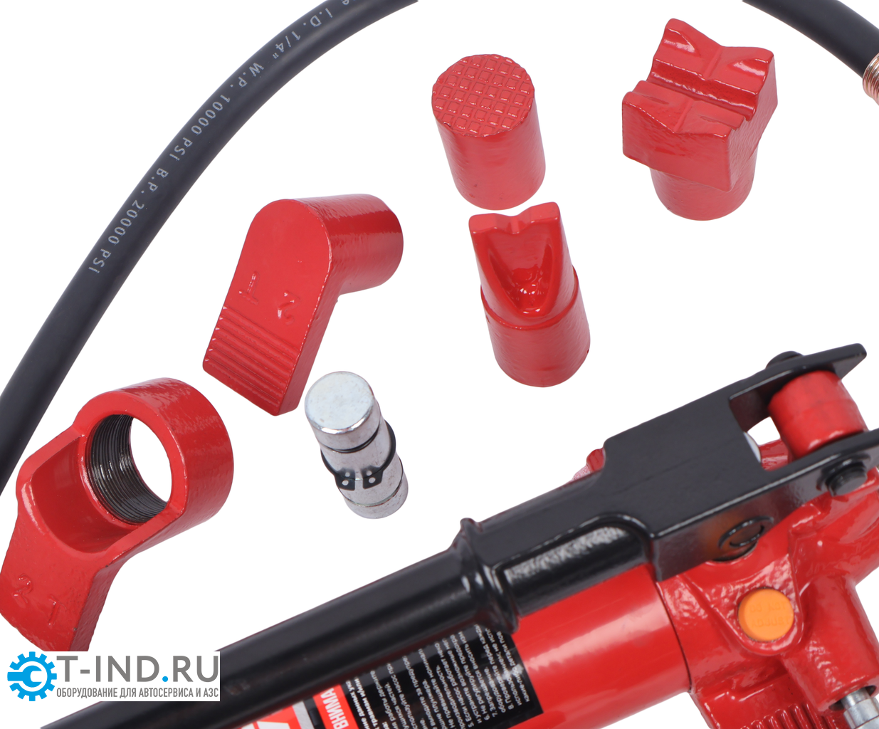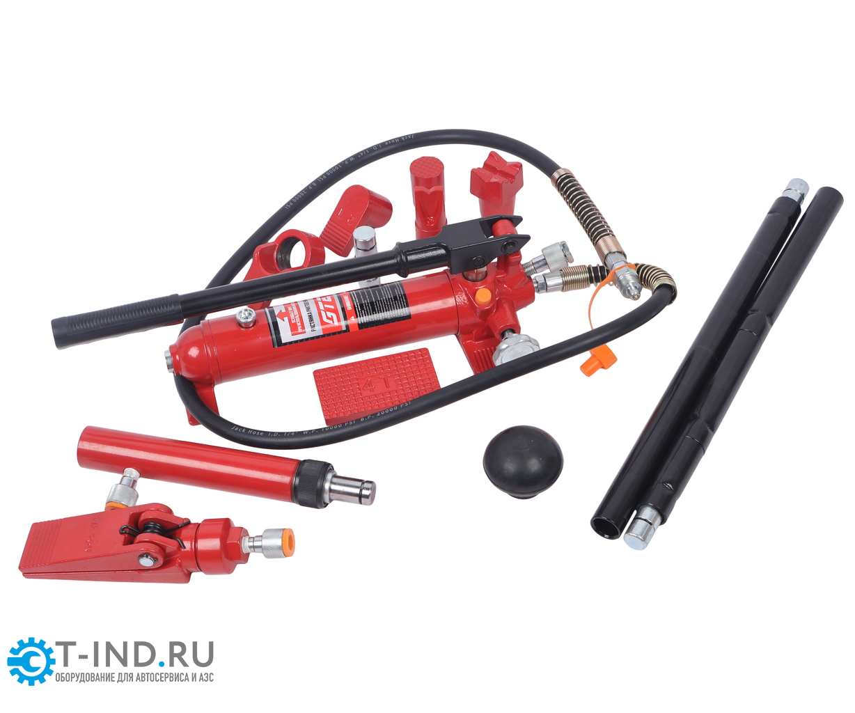 - Гидроцилиндр (4 т) с соединительным шлангом и рукояткой — исполнительный механизм для приложения усилия.