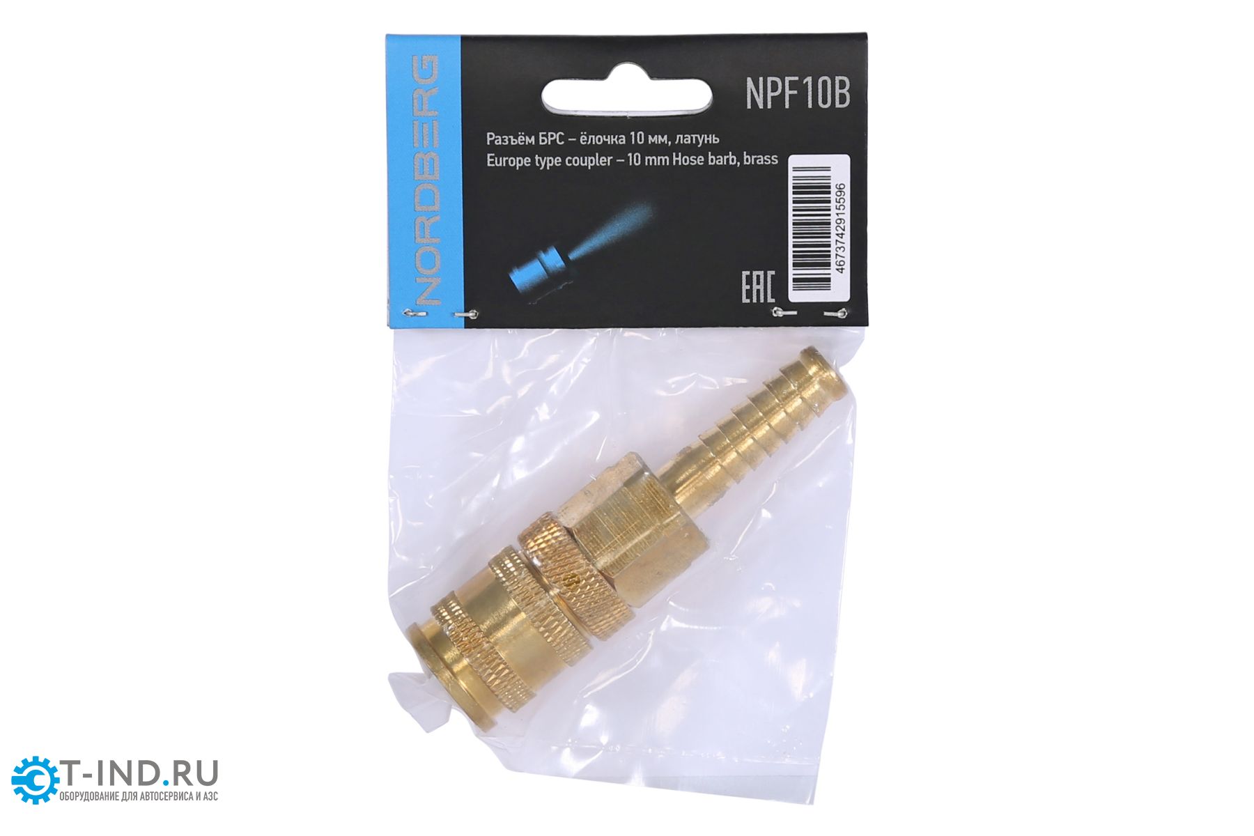 Разъем "мама" быстросъемный елочка Nordberg NPF10B, 10 мм, с фиксатором, латунь