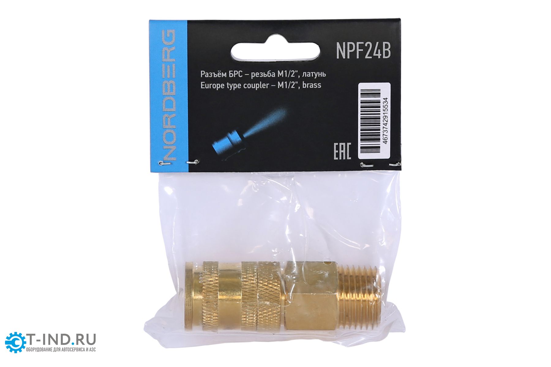 Латунный разъем "мама" быстросъемный NORDBERG NPF24B с размером наружной резьбы 1/2". Обеспечивает соединение элементов пневмолинии и пневматического инструмента в случаях, когда требуется его частая и быстрая замена.