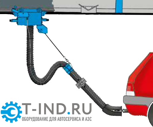 В комплектацию системы входит: профильный алюминиевый рельс, скользящие каретки, термостойкий шланг, подвес для шланга, вытяжная насадка с фиксатором, вытяжной вентилятор, кронштейны для крепления рельса, аксессуары для крепления и подключения вентилятора.