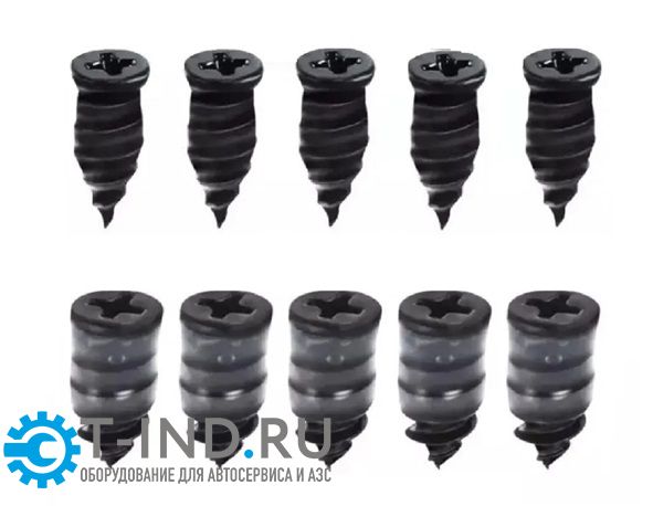 Набор прорезиненных саморезов для быстрого ремонта прокола бескамерных шин.