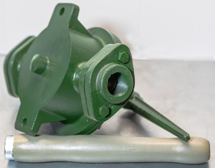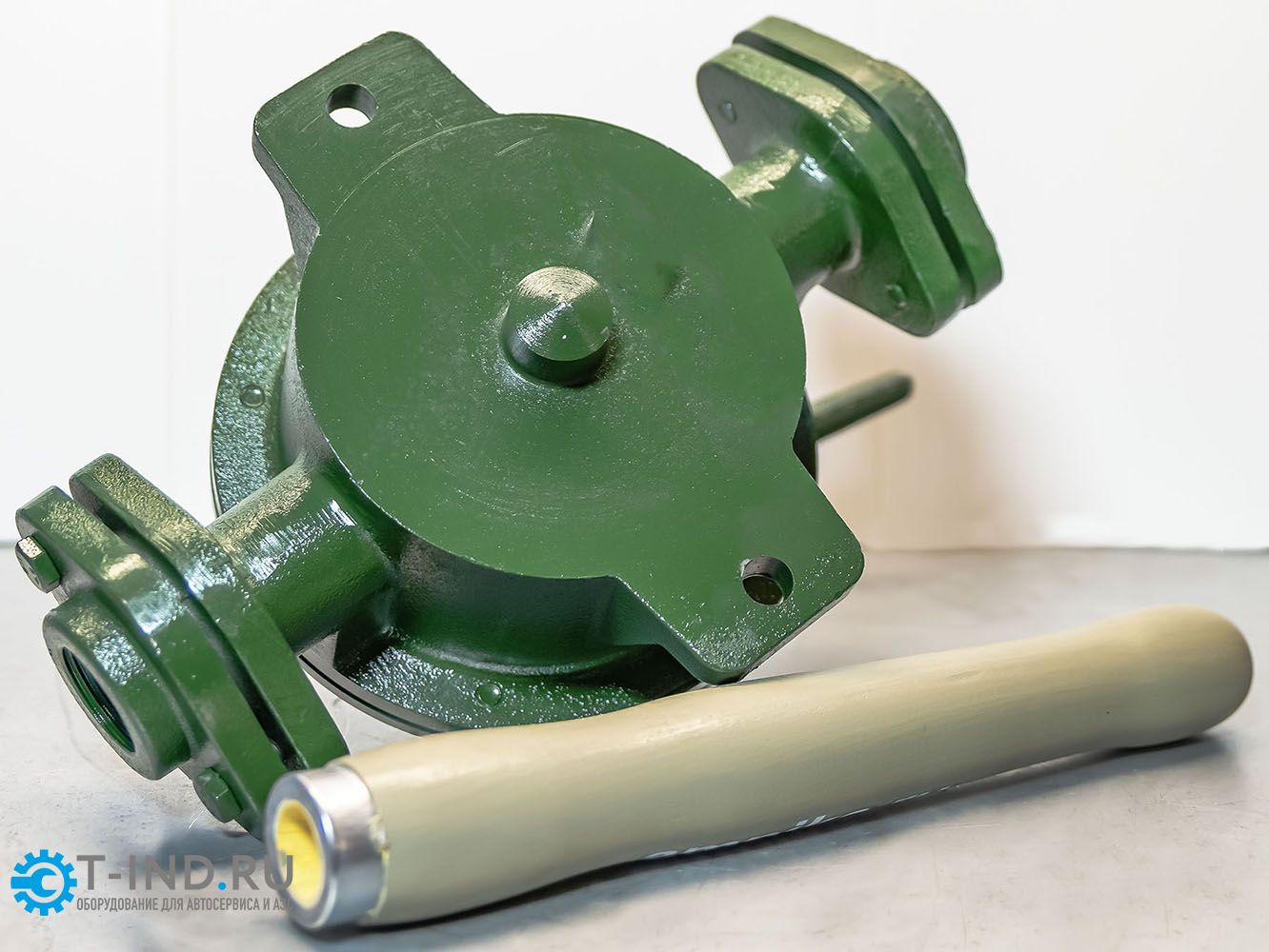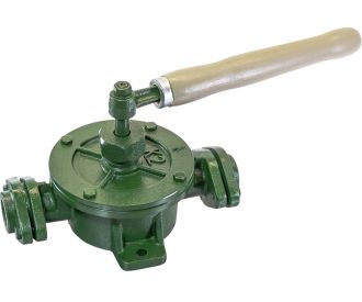 - Во время работы крыло вращается с помощью ручного рычага туда и обратно так, чтобы каждая сторона насоса поочередно всасывала или вытесняла свой объём и, таким образом, обеспечивалось непрерывное протекание жидкости. Базовая модель поставляется вместе с резьбовыми ответными фланцами.