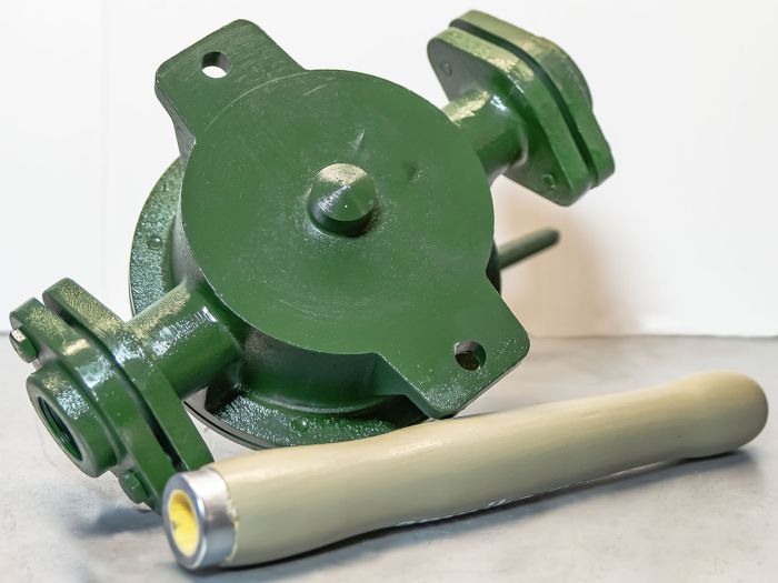 Насос ручного привода K2-plus - оптимального размера ручной насос. Он сочетает в себе лёгкость качания и приличную производительность. При бодром качании (один двойной качок ручки в секунду) он подаст 1,3 кубометра воды за час. И не обязательно воды, он может перекачивать любые нейтральные жидкости низкой вязкости (часто - соляру для дизельгенераторов).