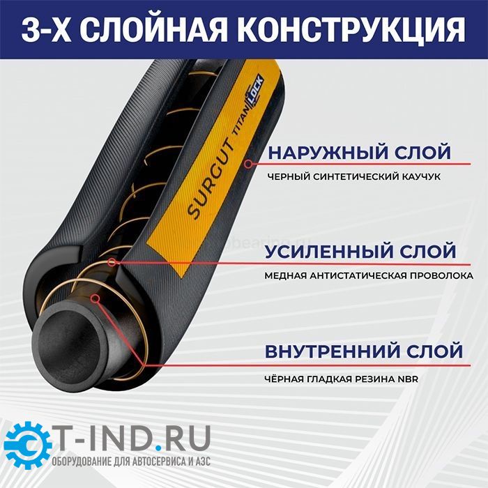 Напорно-всасывающий маслобензостойкий рукав SURGUT TL038SR TITAN LOCK создан из нитрильного маслостойкого каучука (NBR).
