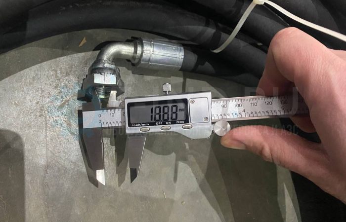 С одной стороны прямой фитинг, с другой стороны - угловой фитинг 90 градусов - гайка стандарта DK - самый распространенный стандарт резьбы для техники производства России и СНГ;