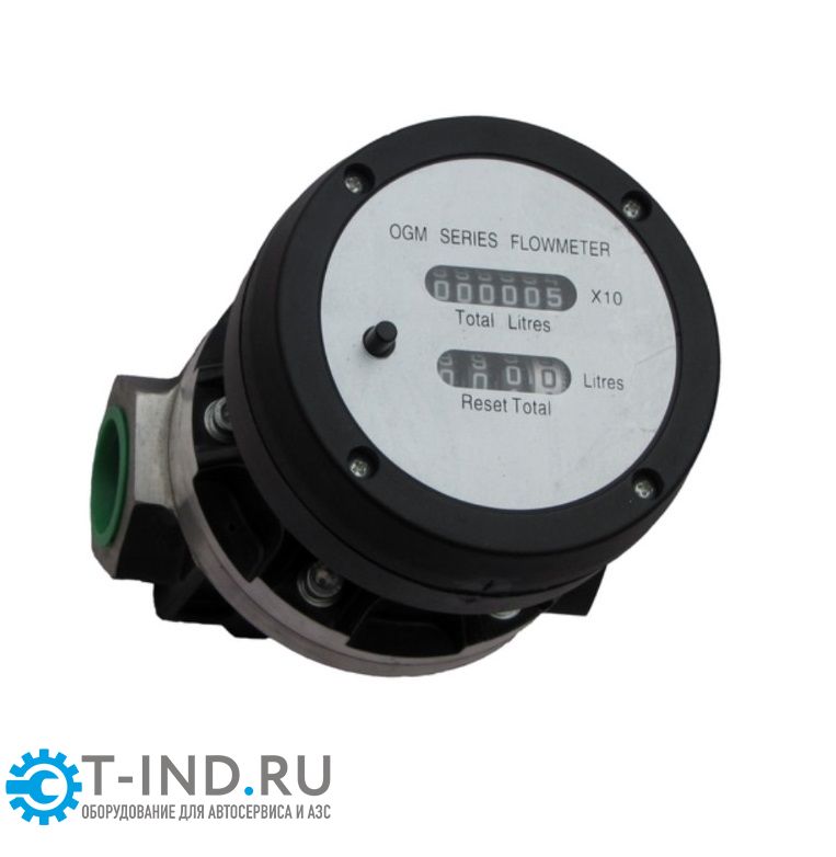 Счетчик (расходомер) серии OGM-А-50 предназначен для точного измерения количества дизельного топлива, керосина, масел и других вязких жидкостей вязкостью до 1000 сР, по отношению к которым материалы, из которого изготовлен счетчик, устойчивы. Использование овальных шестерен в считывающем устройстве счетчика обеспечивает высокую точность измерений в широком диапазоне вязкости перекачиваемого продукта. Корпус счетчика изготовлен из алюминия, овальные роторы из стали (опционально из- полиэфирной смолы). Счетчик для представления данных имеет механический регистратор, имеющий два цифровых табло: 4-х разрядное обнуляемое и 6-ти разрядное необнуляемое.