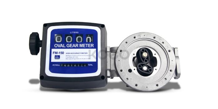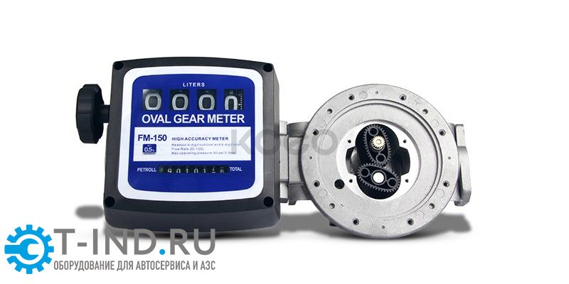 Petroll FM 150 - механический счётчик учета дизельного топлива от компании Petroll. Овальные шестерни приводятся в движение протекающей жидкостью, и крутят зубчатую передачу, которая располагается в крышке указателя счетчика и приводит в движение диски с цифрами. Две шкалы учета – первая (крупная) показывает литраж последней заправки до 9 999 л (с возможностью обнуления), вторая не обнуляемая, считает общее количество заправленных литров, максимальное значение – 99 999 999 л.