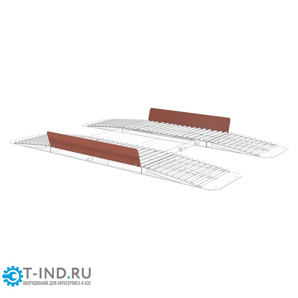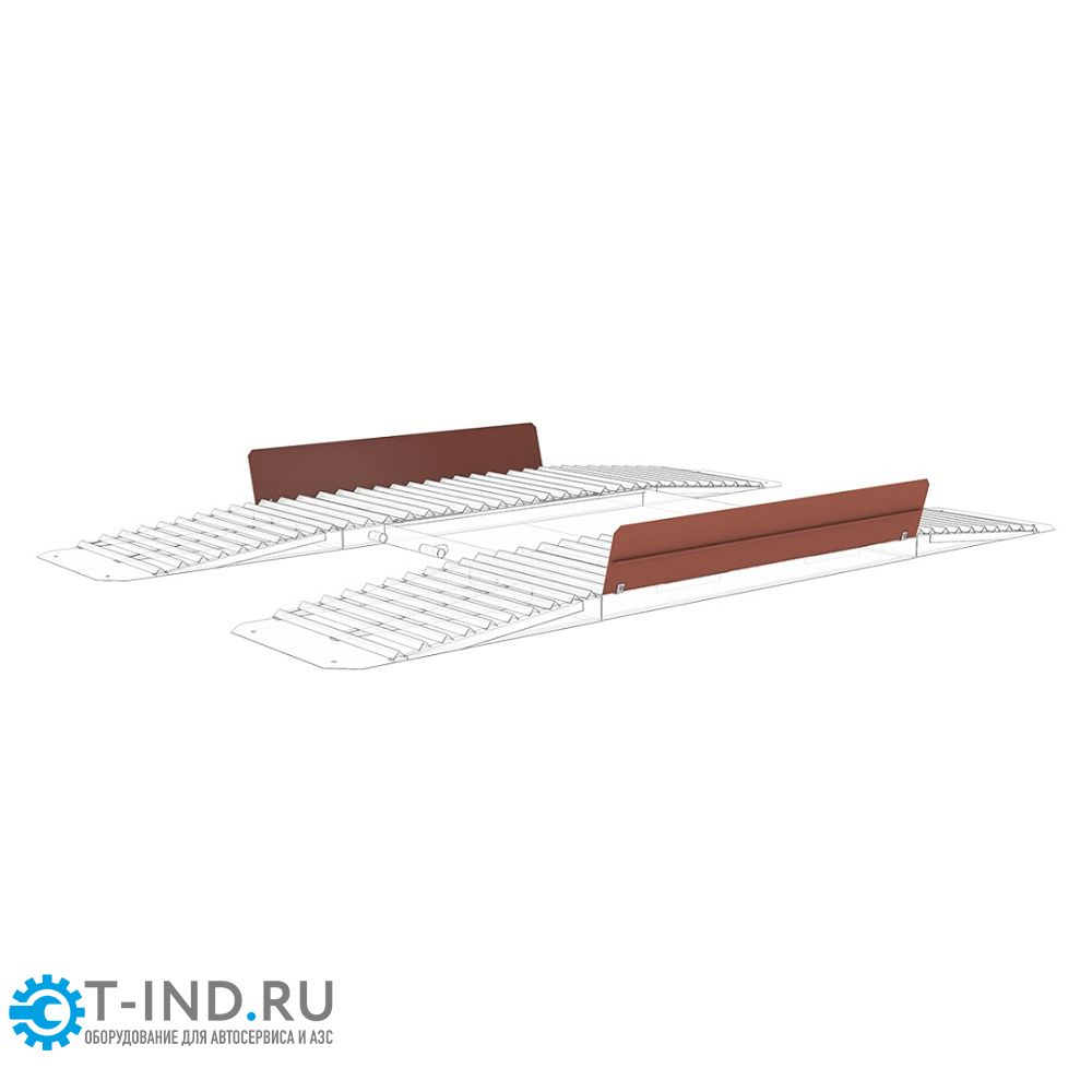 Защитный щиток для эстакады предназначен для дополнительной экономии воды в процессе мойки колес грузового автотранспорта, а также для сохранения чистоты в рабочей зоне вокруг эстакады. Он защищает оператора очистной установки от брызг и водяной пыли, при этом служит дополнительным ориентиром для водителя обслуживаемой машины при съезде-заезде на эстакаду.