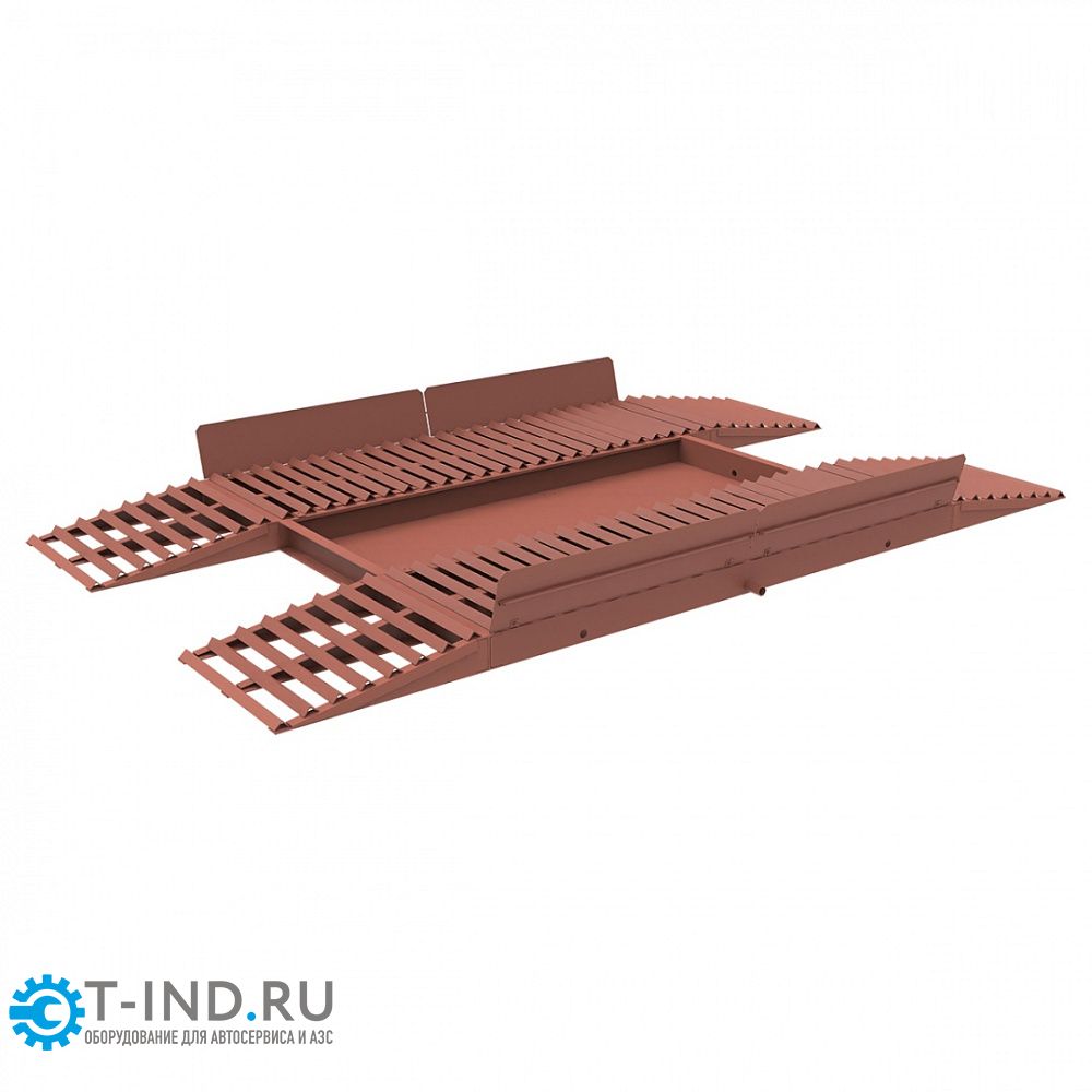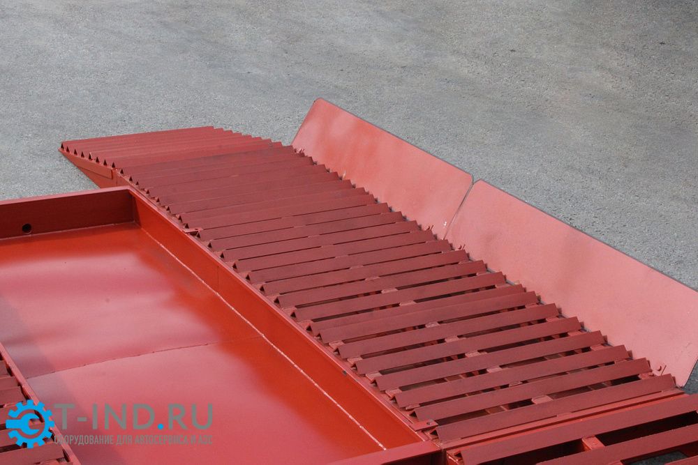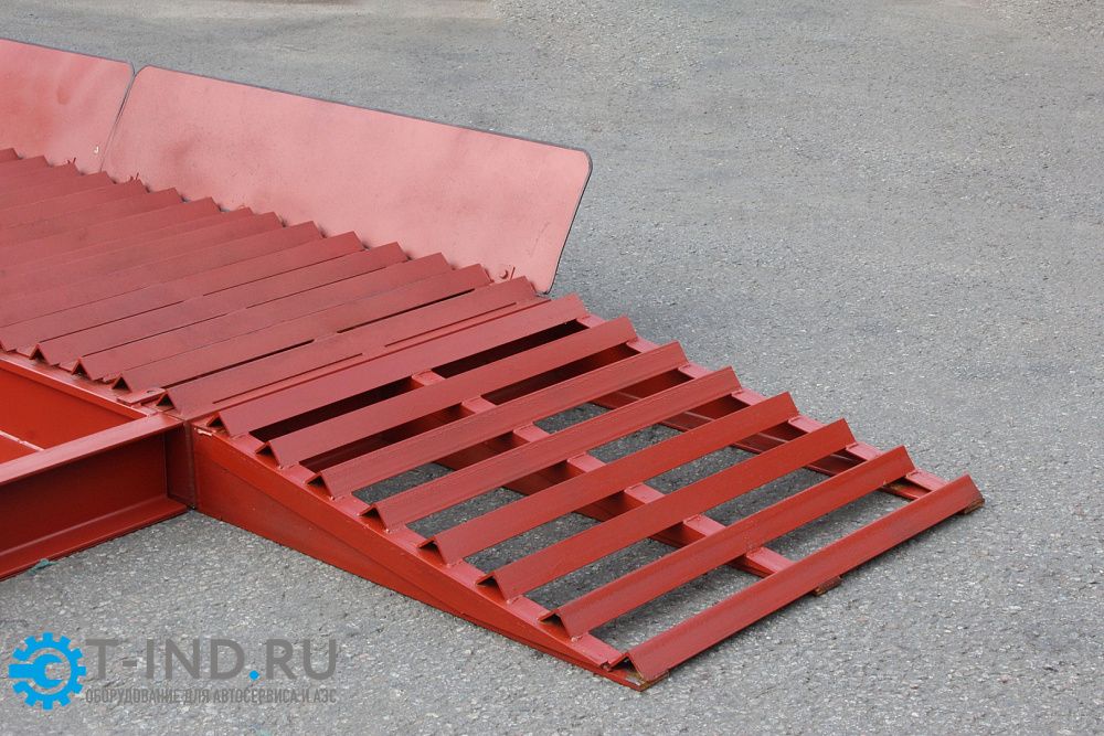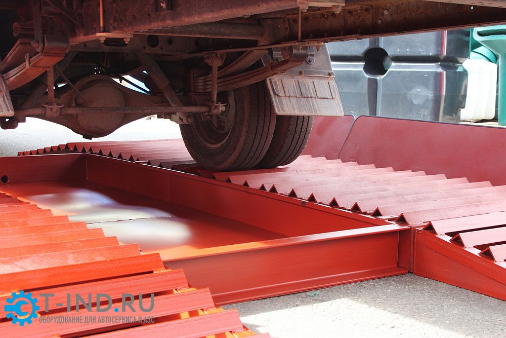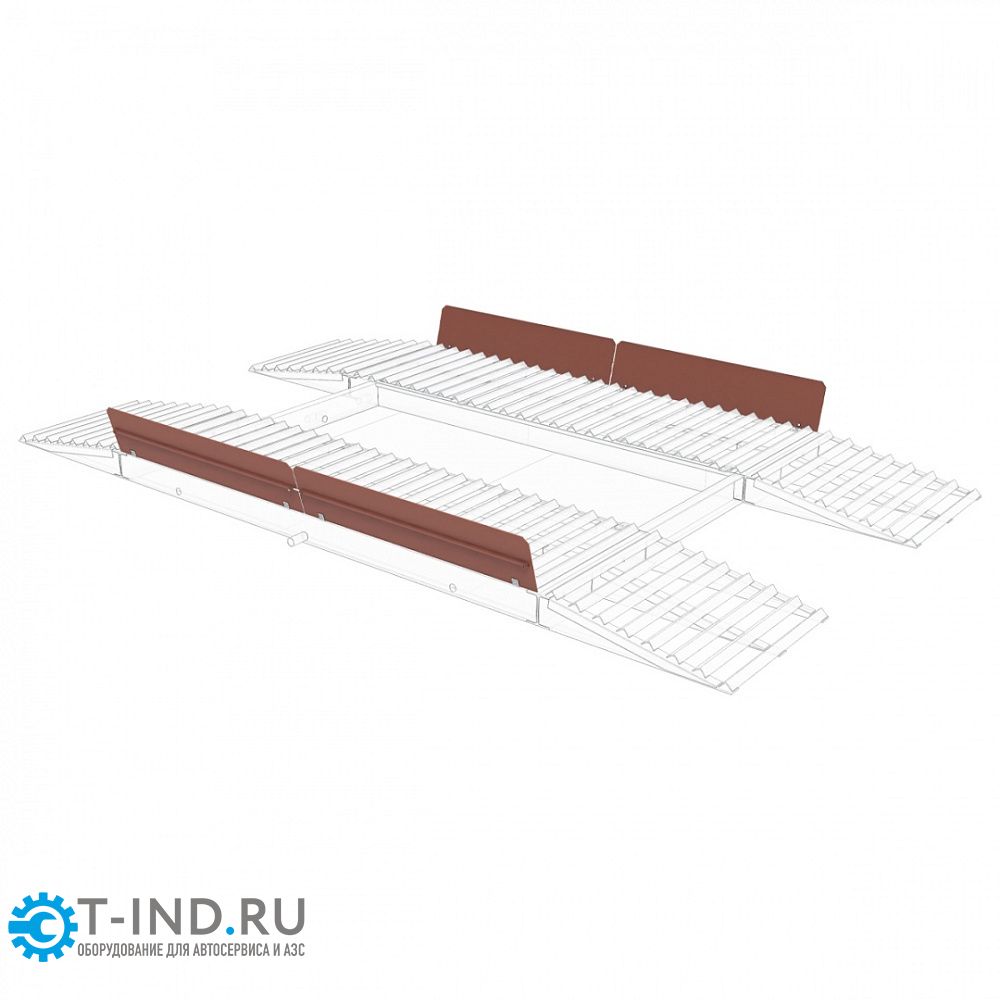Защитный щиток для эстакады предназначен для дополнительной экономии воды в процессе мойки колес грузового автотранспорта, а также для сохранения чистоты в рабочей зоне вокруг эстакады. Он защищает оператора очистной установки от брызг и водяной пыли, при этом служит дополнительным ориентиром для водителя обслуживаемой машины при съезде-заезде на эстакаду.