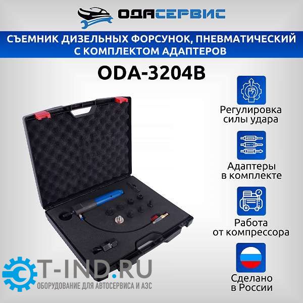 ODA-3204B съемник дизельных форсунок пневматический, применяется для демонтажа дизельных форсунок, имеющих следы закисания, прогорания колец и т.п. С его помощью вы сократите в разы время, затрачиваемое на извлечение таких форсунок.